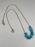 Turquoise Stone Beads On Sterling Silver Tube Bead Necklace, Marked 925 S, Star Hallmark, 17.5"