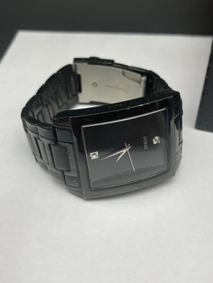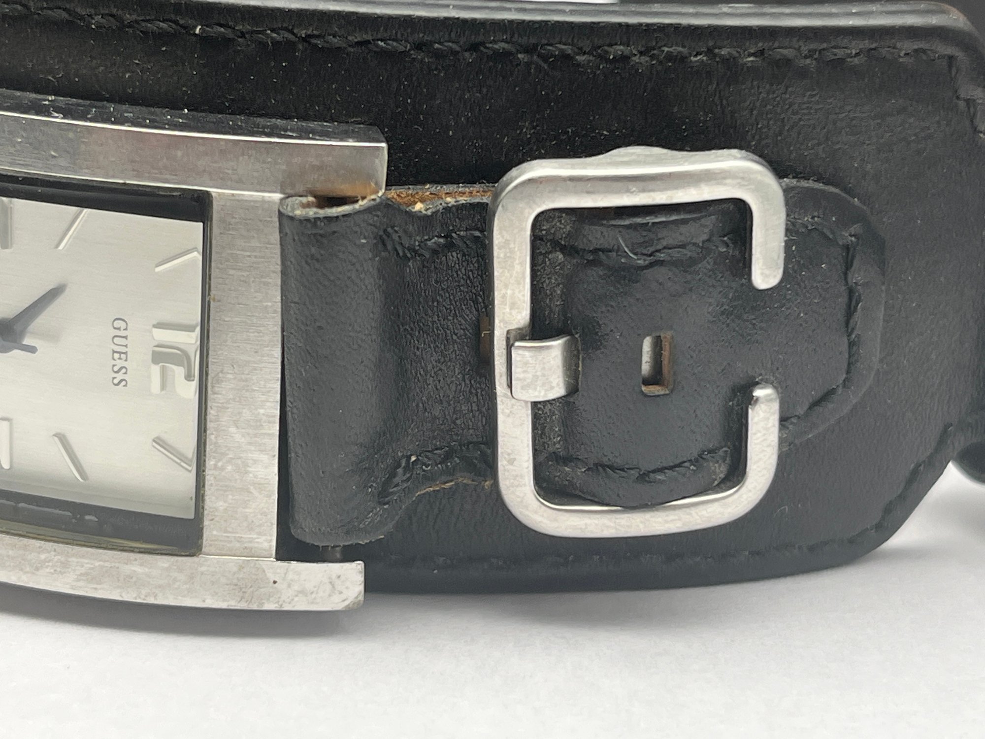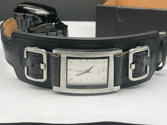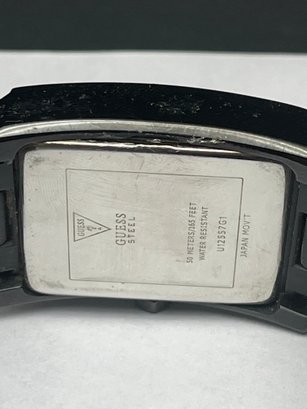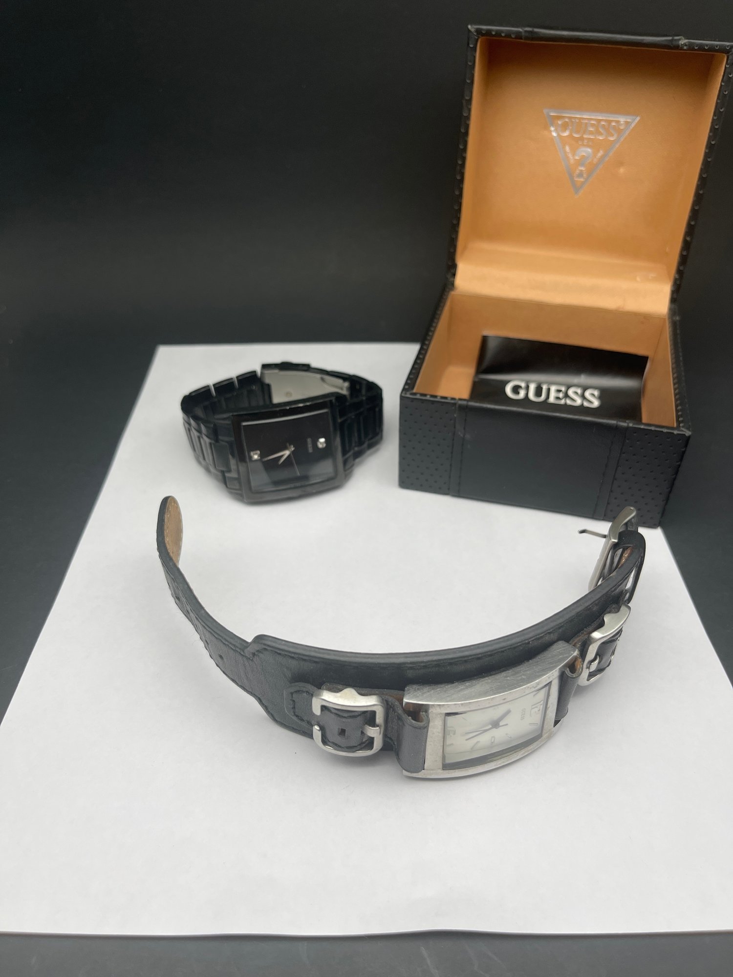 Two Men's GUESS Wristwatches - One With Leather Band & One With Stainless Link Bracelet, Worn, Need Batteries