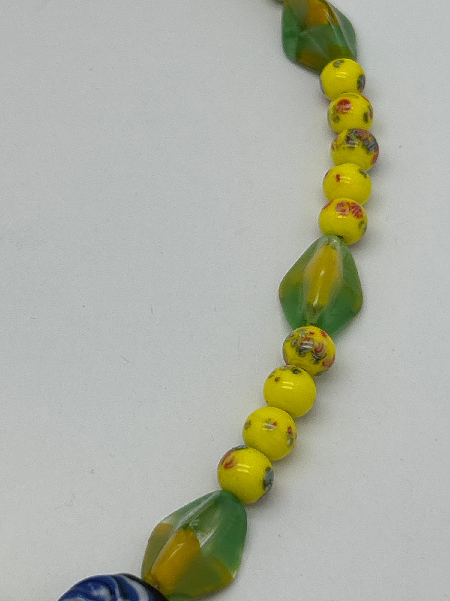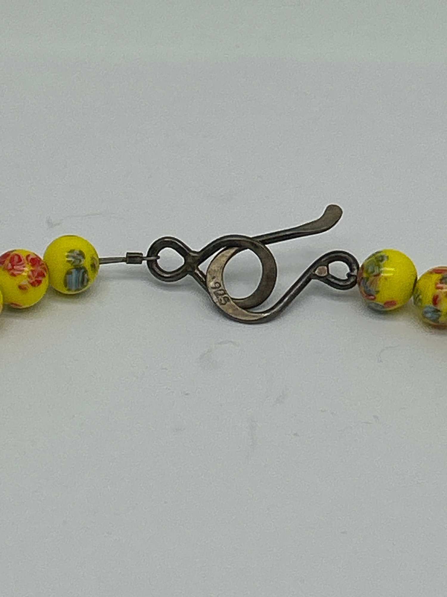 Venetian Millefiori Artisan Glass Bead Necklace With Sterling Silver Hook Clasp, 18 Inch