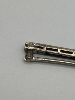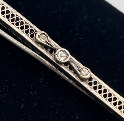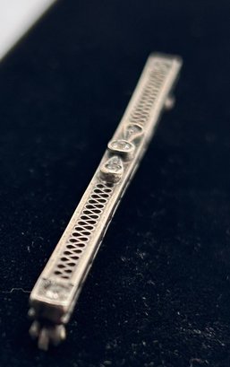 Victorian Style Sterling Silver Bar Pin With Clear Stones