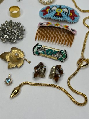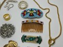 Vintage Jewelry Lot And Beaded Hair Combs