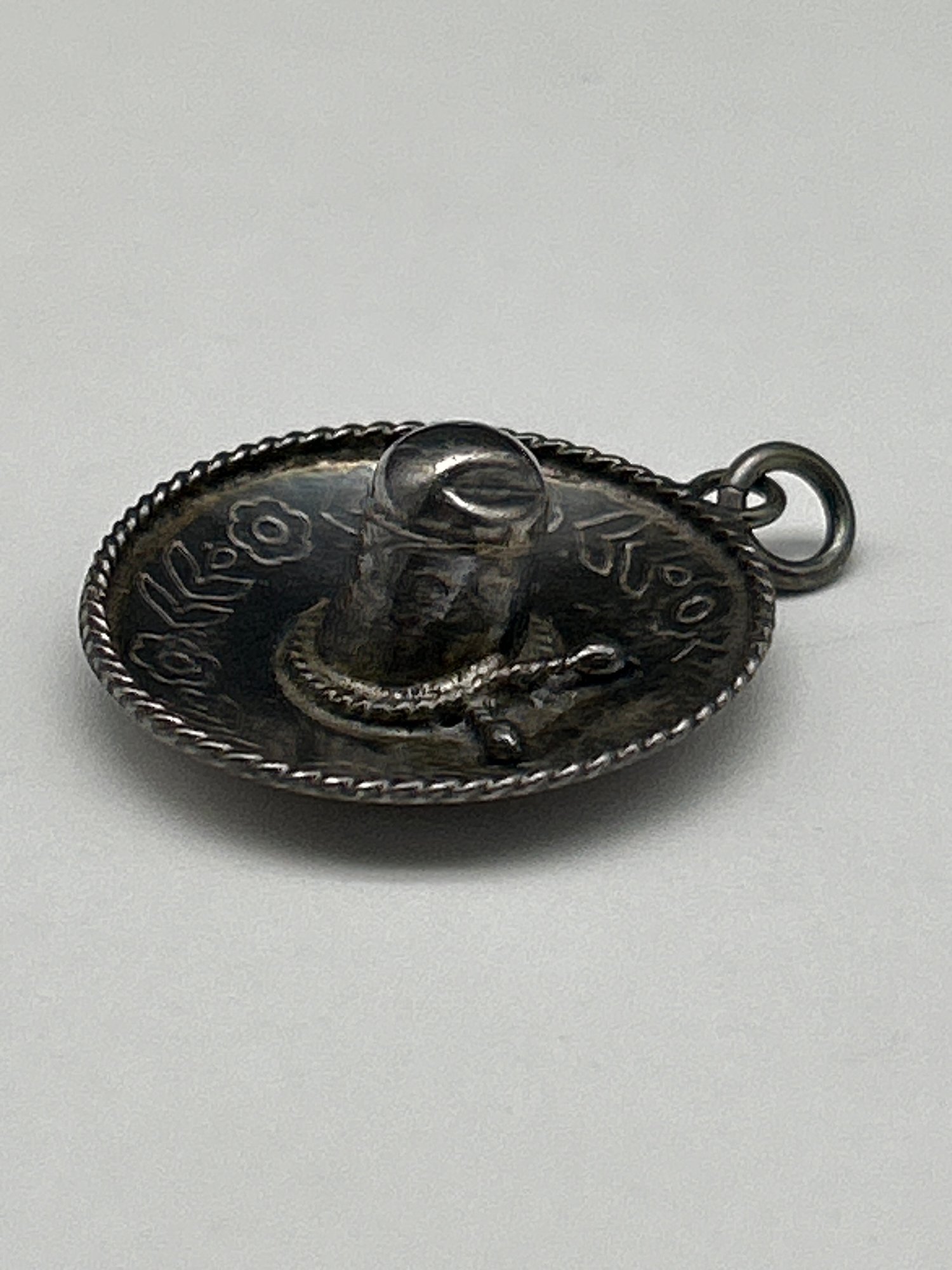 Vintage MEXICO Sterling Silver Sombrero Pendant, Eagle Hallmark, 1"