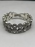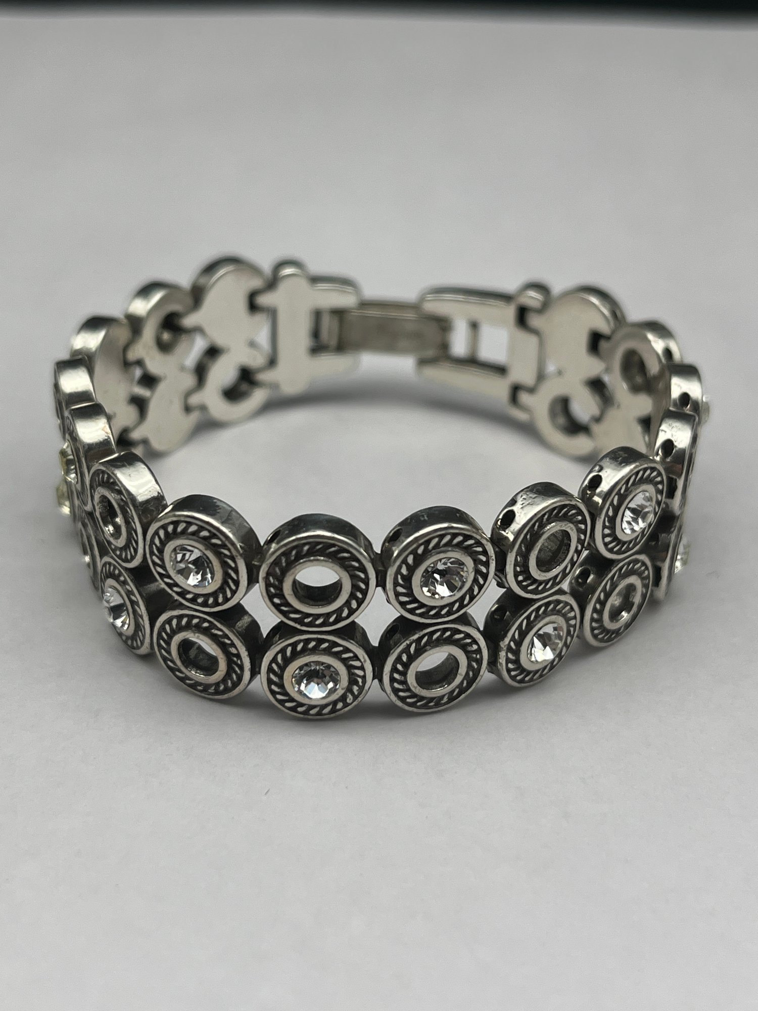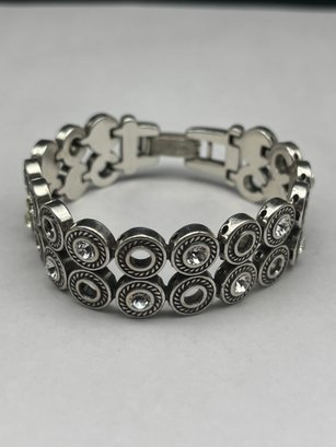 Vintage Signed BRIGHTON Swarovski Crystal Twinkle Link Bracelet, Polished Silver Plated Circular Links, 6.5"