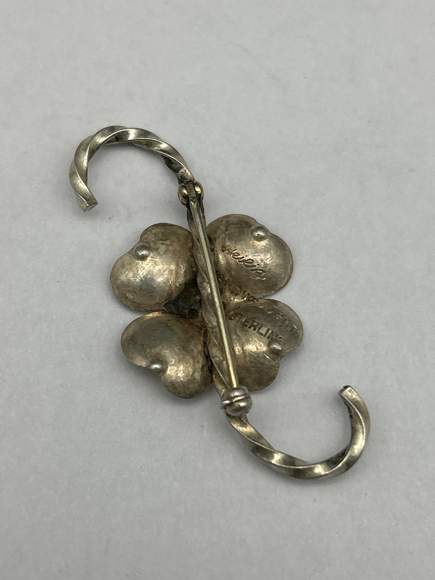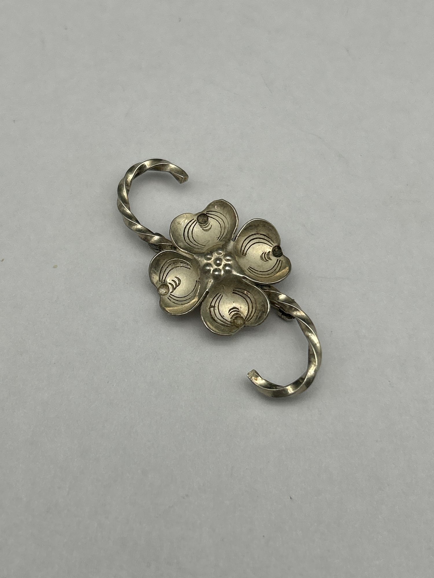Vintage Signed HEILIG Handwrought Sterling Silver Dogwood Flower And Twisted Bar Brooch, 1.75"