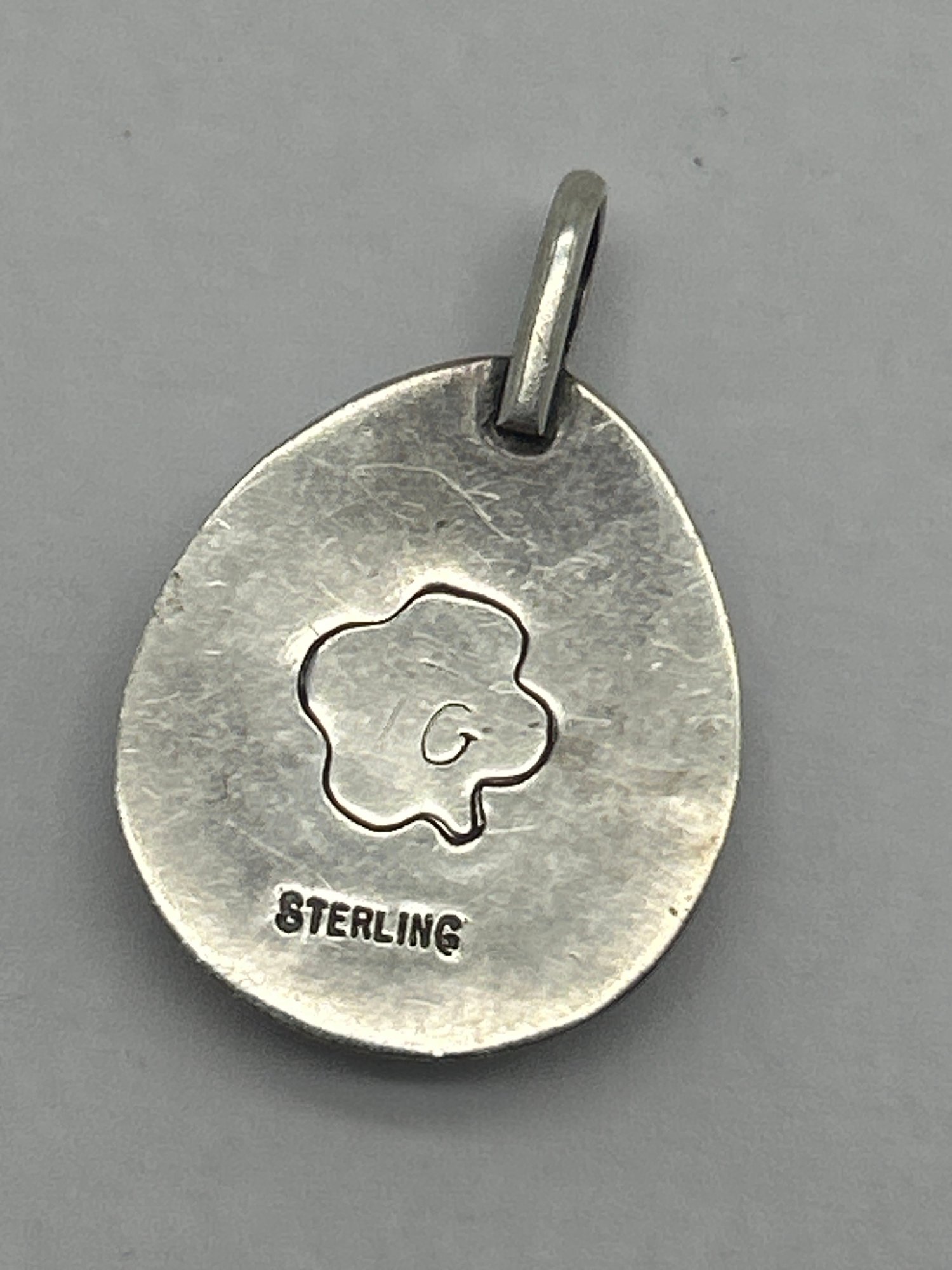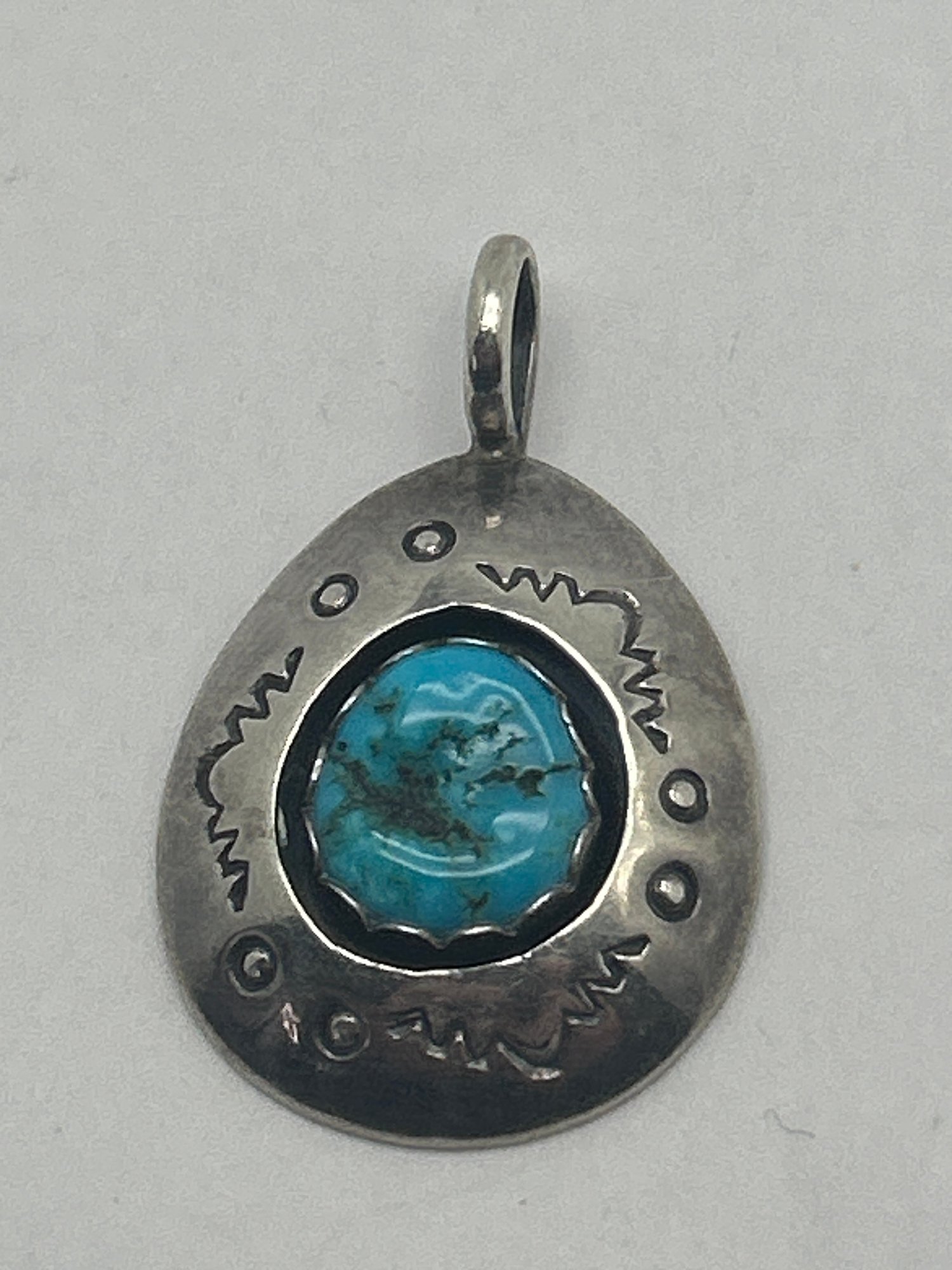 Vintage Sterling Silver Native American Navajo Bear Paw Turquoise Pendant, Signed TG