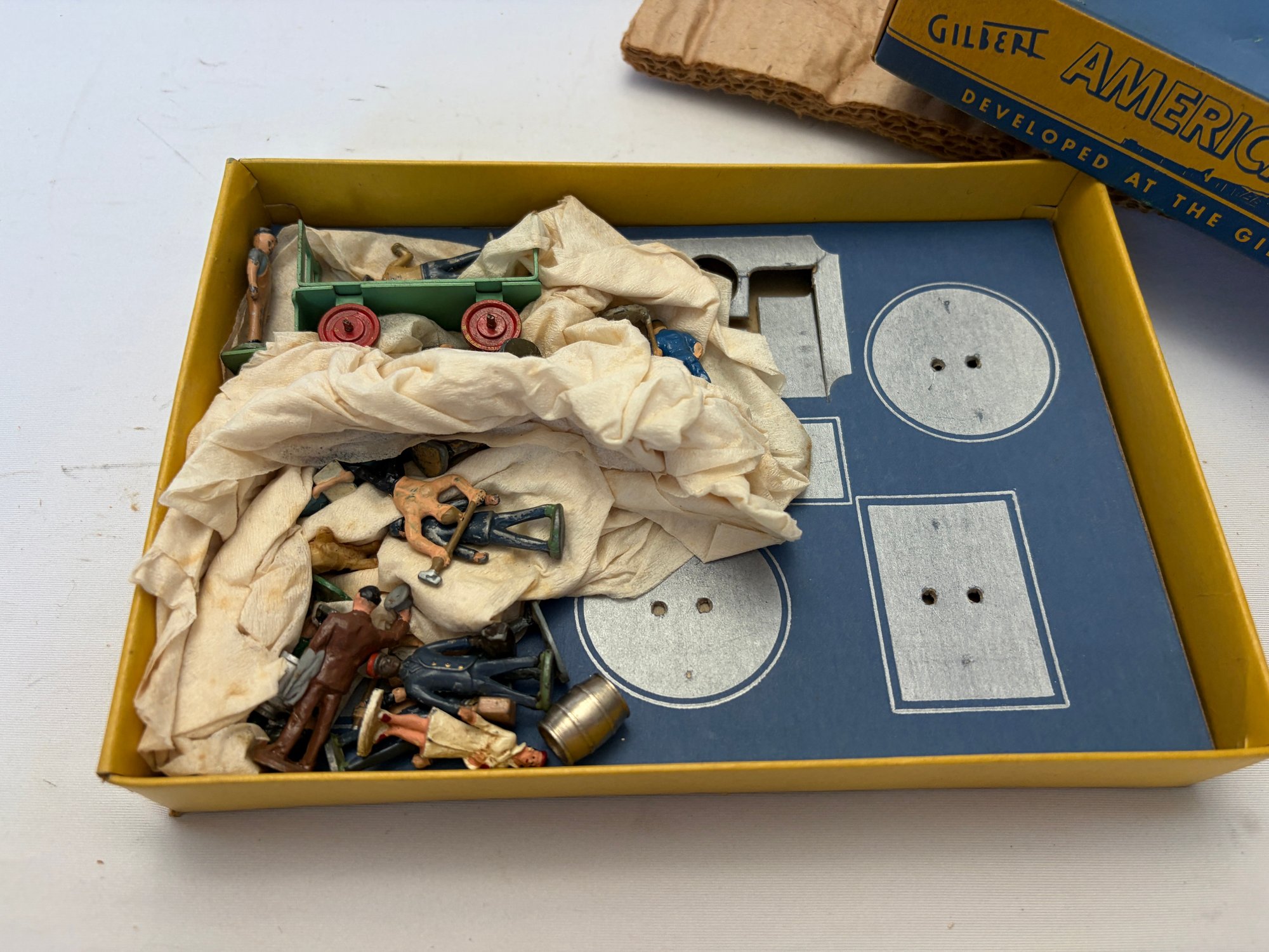 Vintage Gilbert American Flyer Box With Many Pieces And Toy Figures