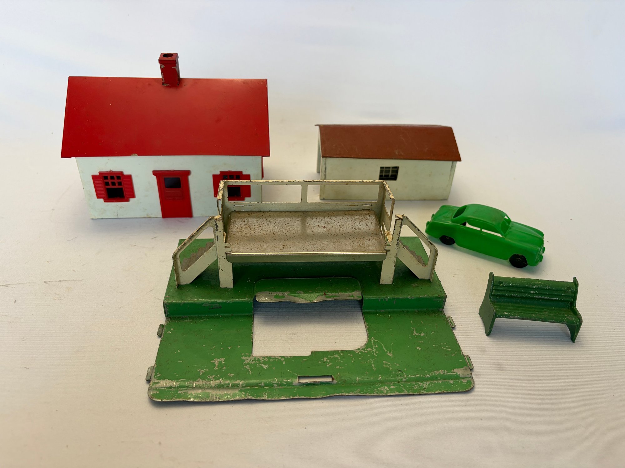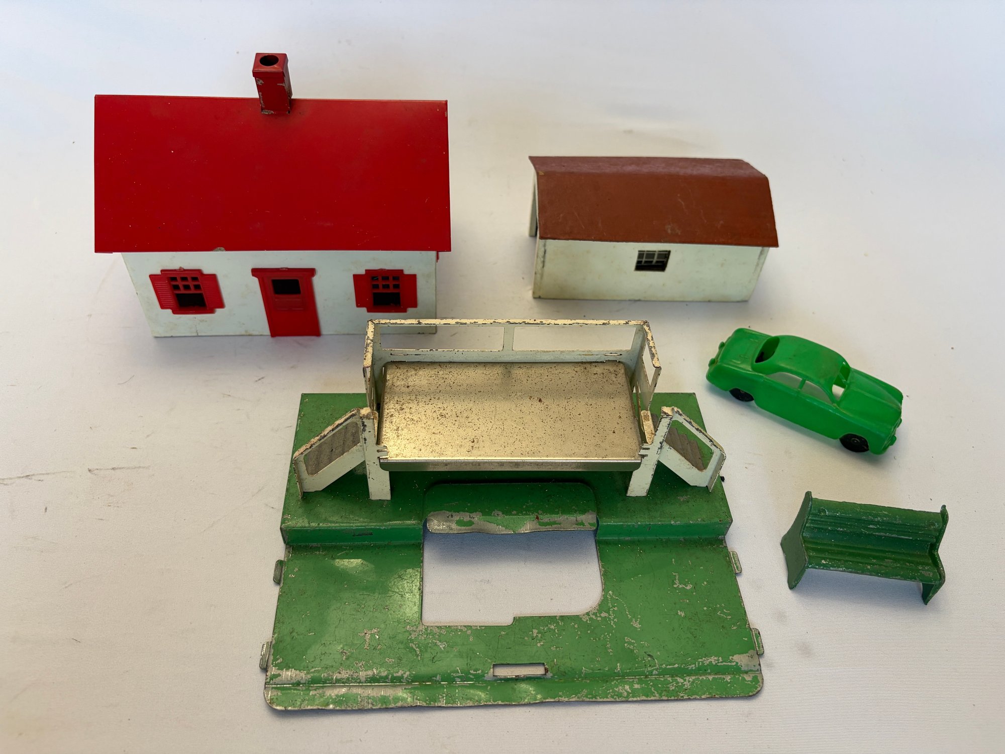 Vintage Toy Set With Barn, Car, Etc