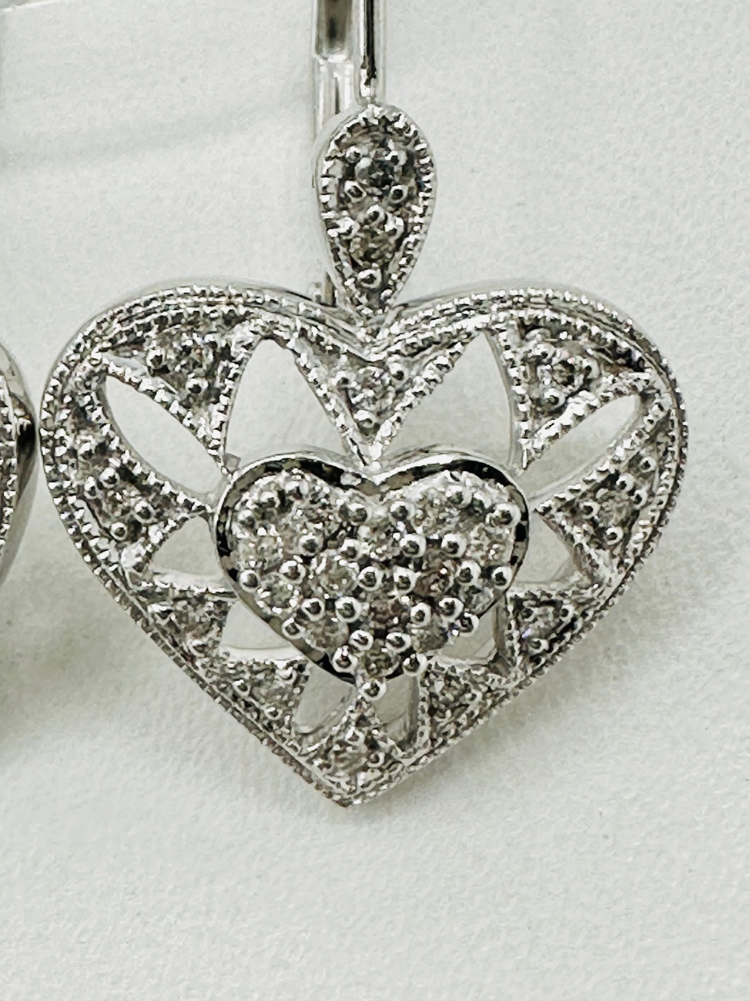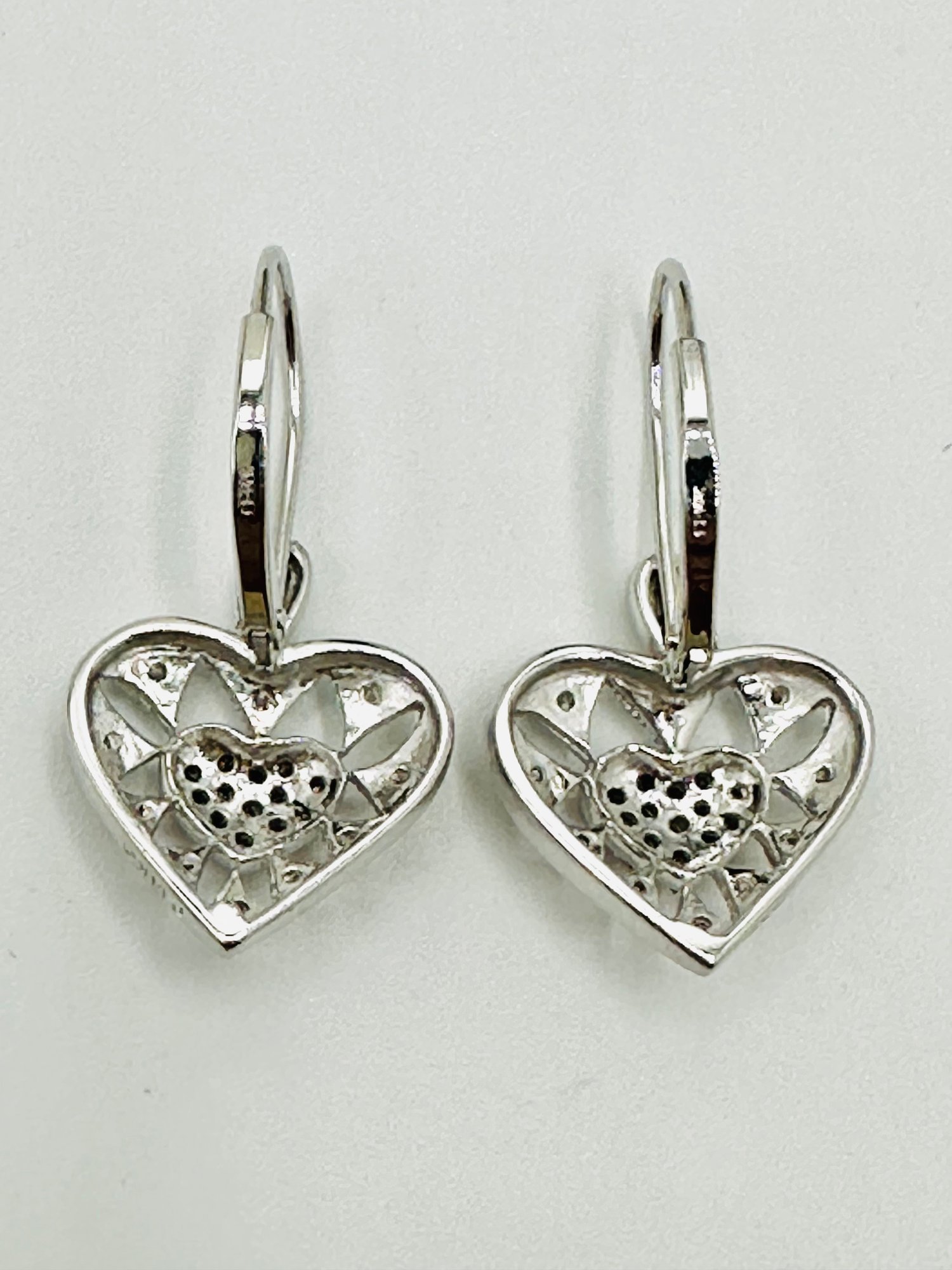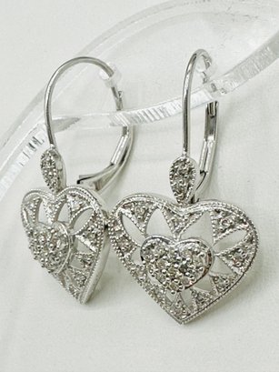 14KT White Gold,Pair of Natural Diamond Heart Earrings