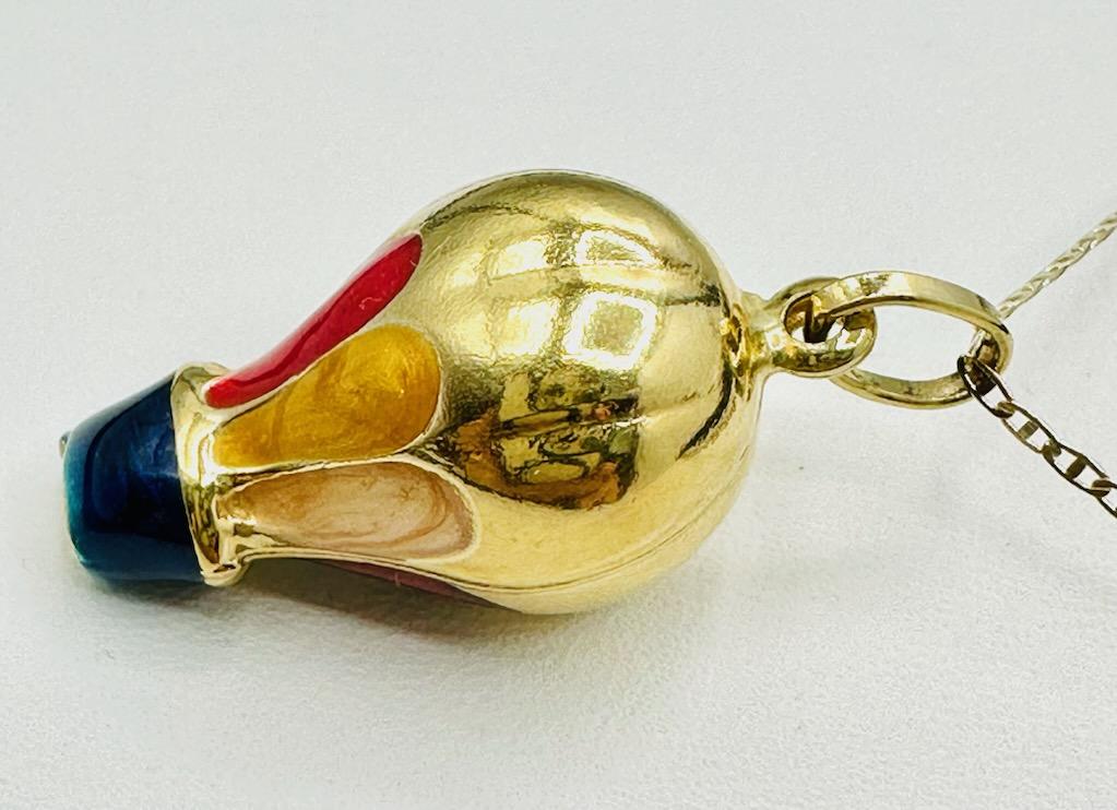 Hot Air Balloon Pendant with Multi Colored Enamel and Chain