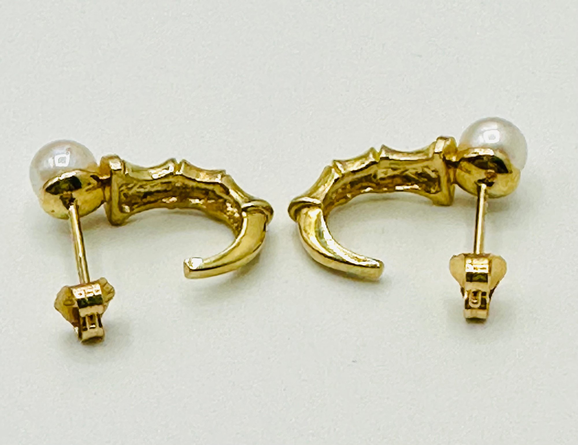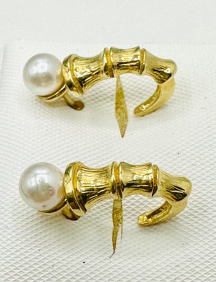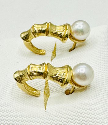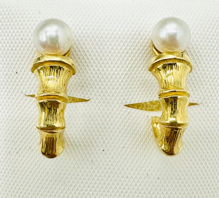 14KT Yellow Gold,Pair of Pearl Bamboo Earrings