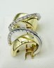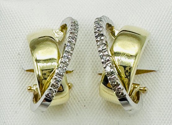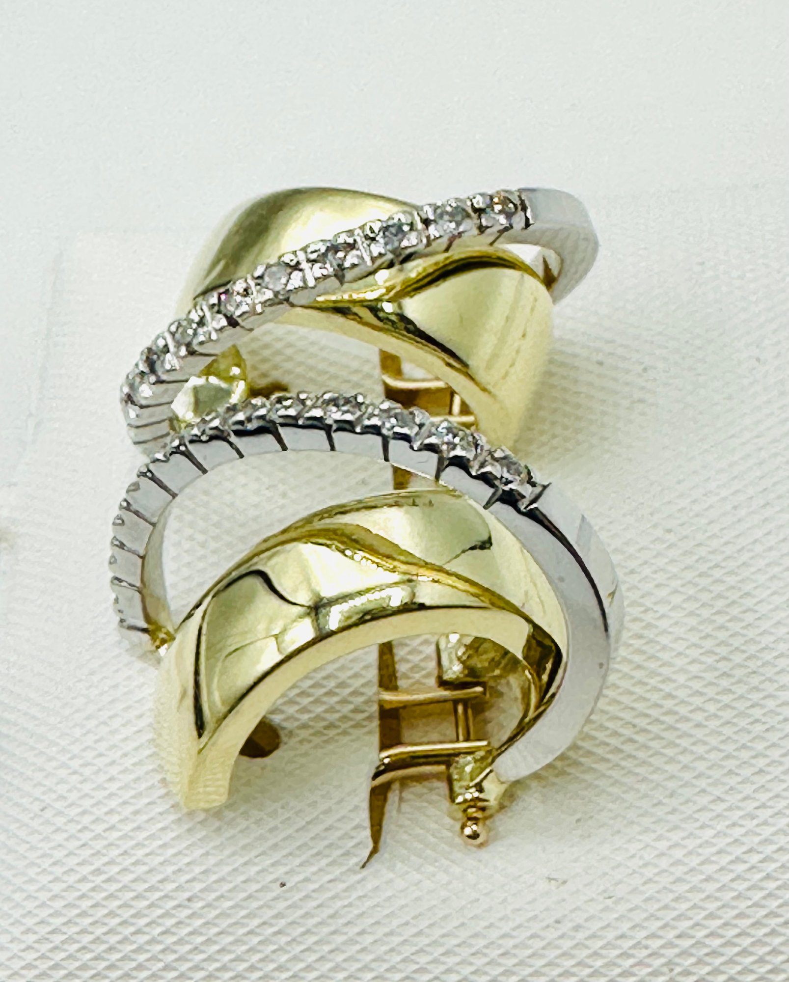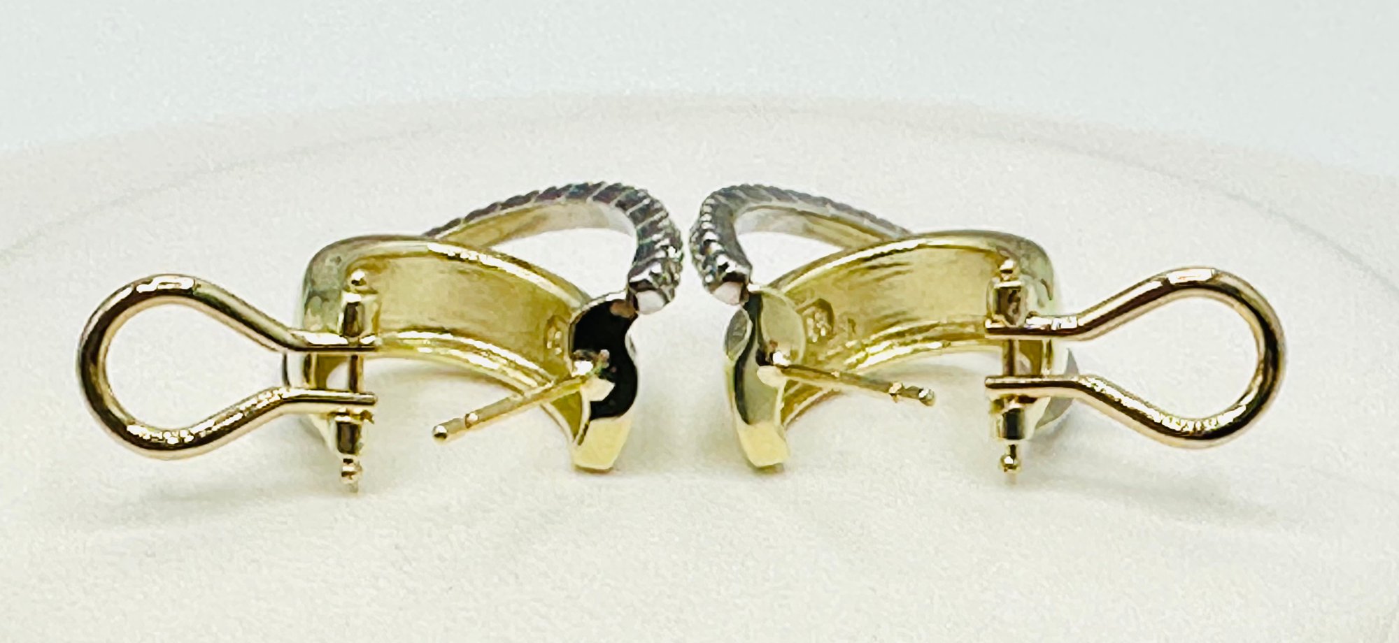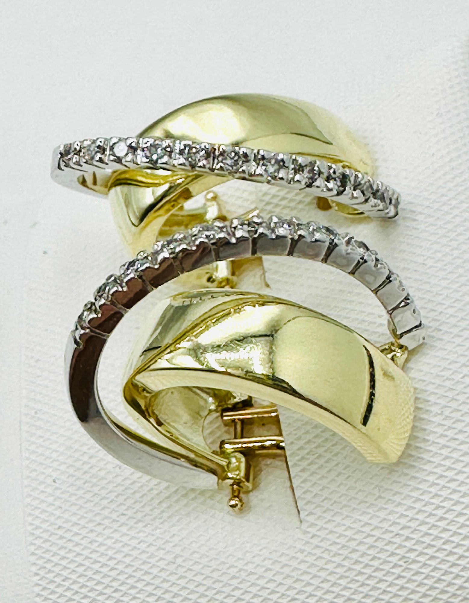 Pair of Natural Diamond Double Hoops Earrings, 14KT Yellow and White Gold