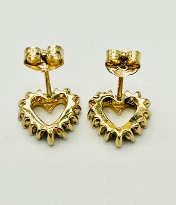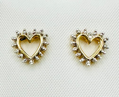 Pair of Natural Diamond Heart Studs Earrings, 14KT Yellow Gold