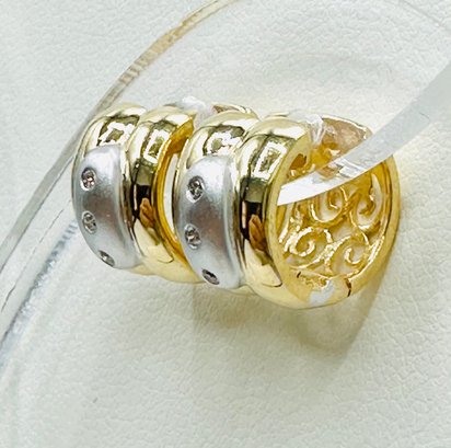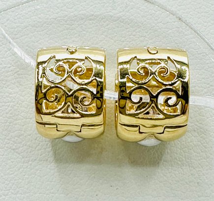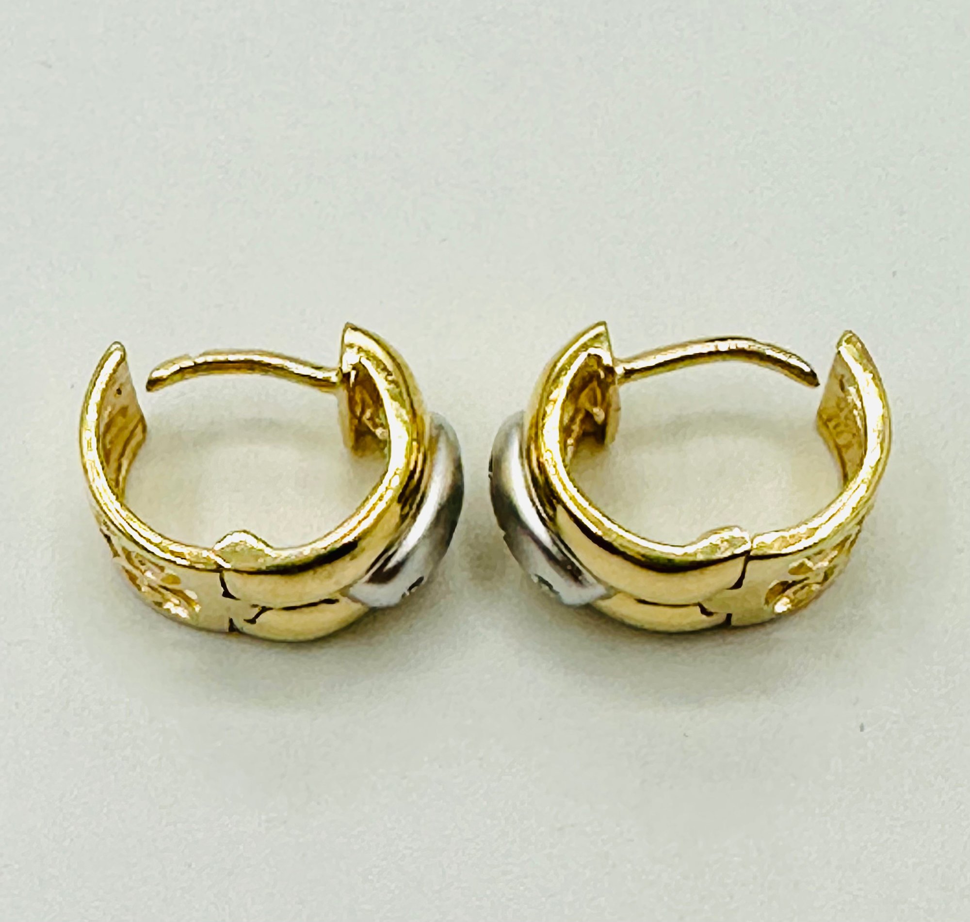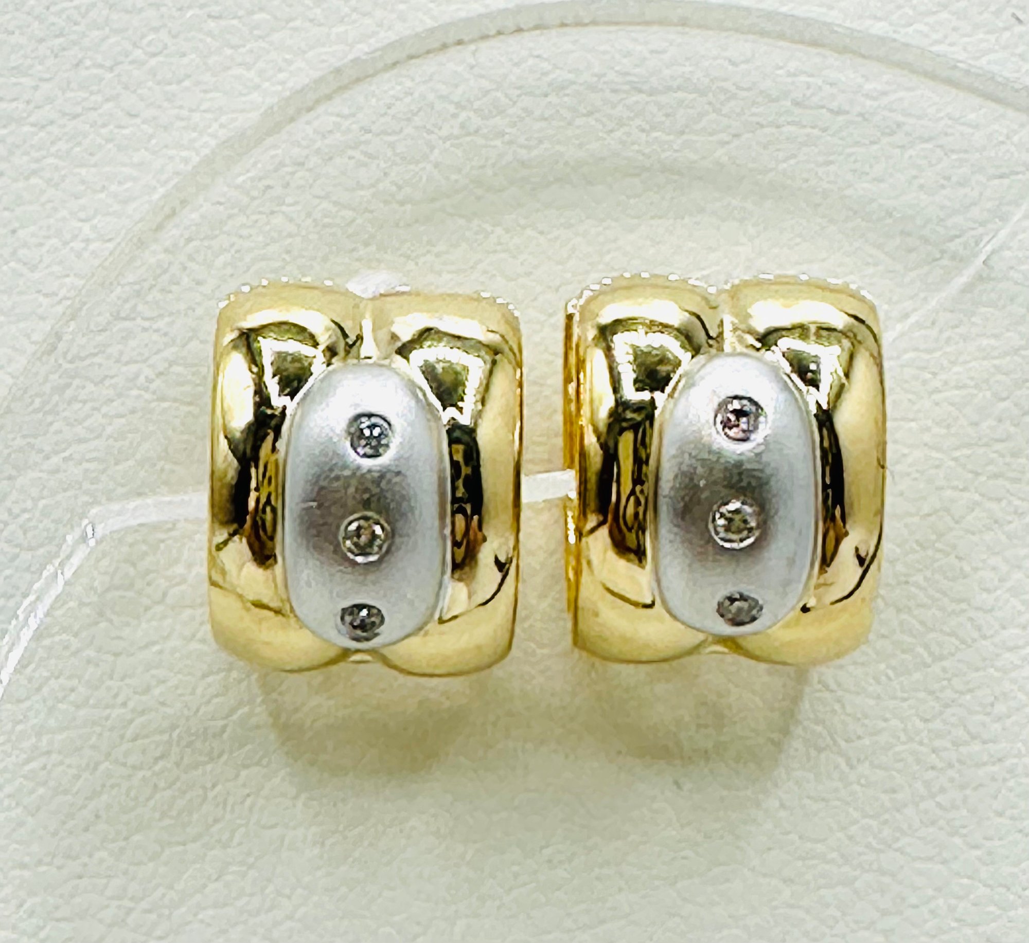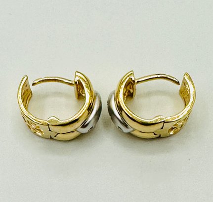 Pair of Natural Diamond Heavy Small Huggies Earrings, 14KT Yellow and White Gold