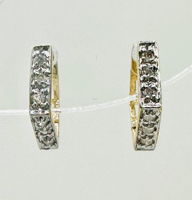 Pair of Natural Diamond Small Huggies Earrings, 14KT Yellow Gold