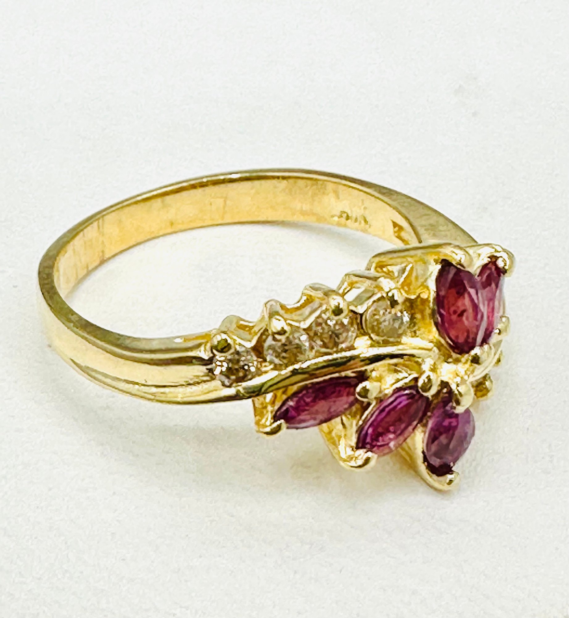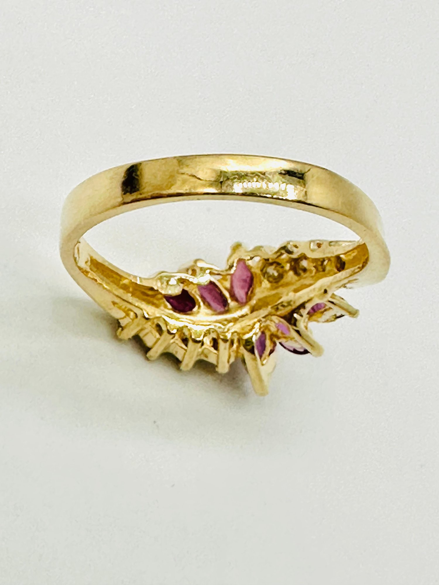 Natural Diamond and Ruby Ring,14KT Yellow Gold