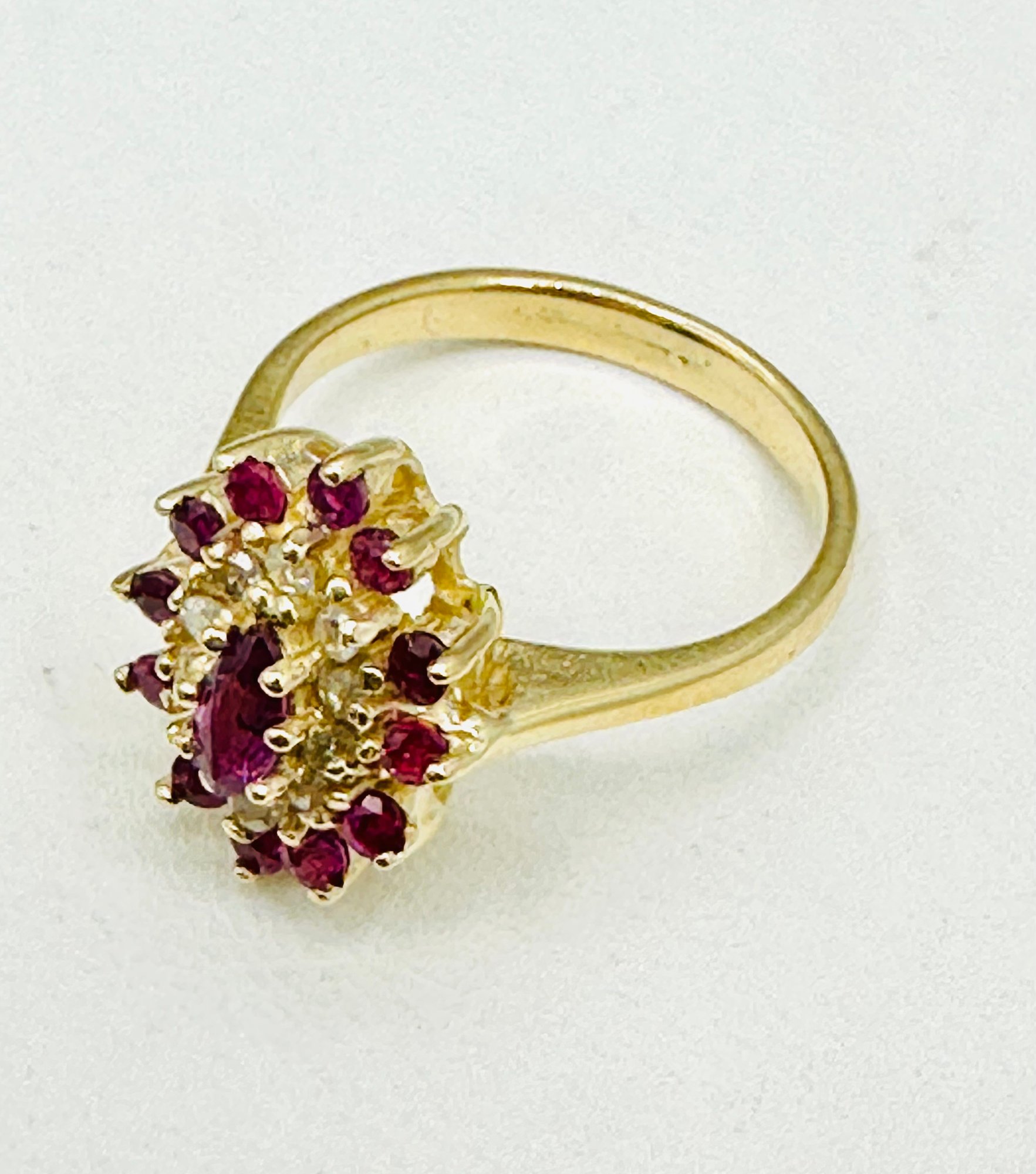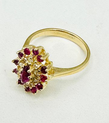 Natural Diamond and Ruby Ring,14KT Yellow Gold