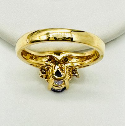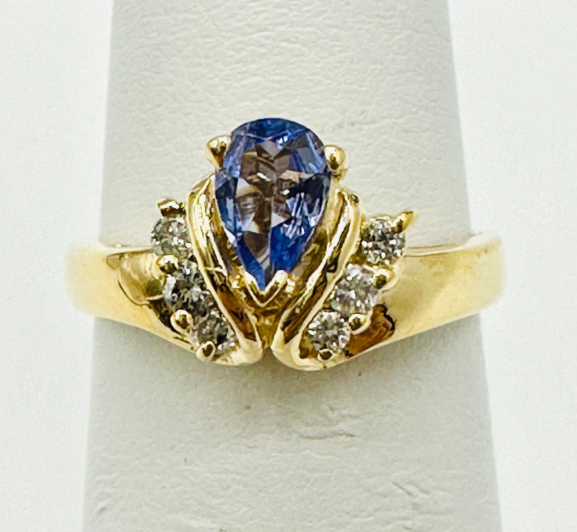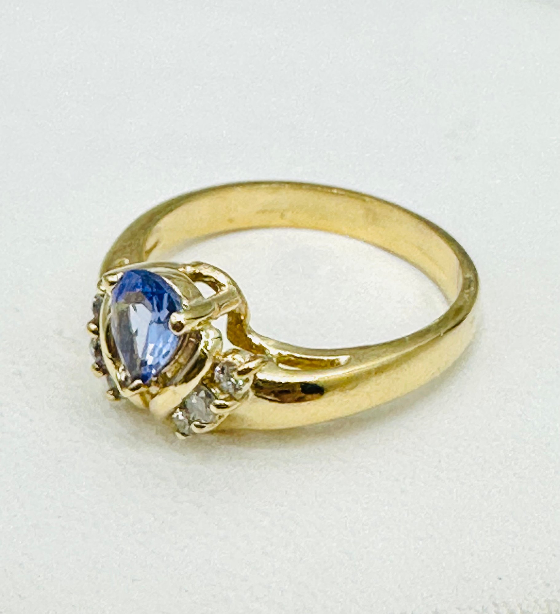 Natural Diamond and Tanzanite Ring,14KT Yellow Gold