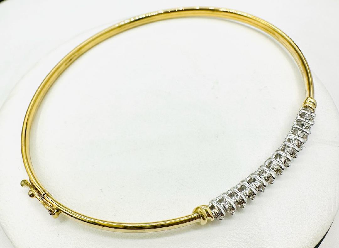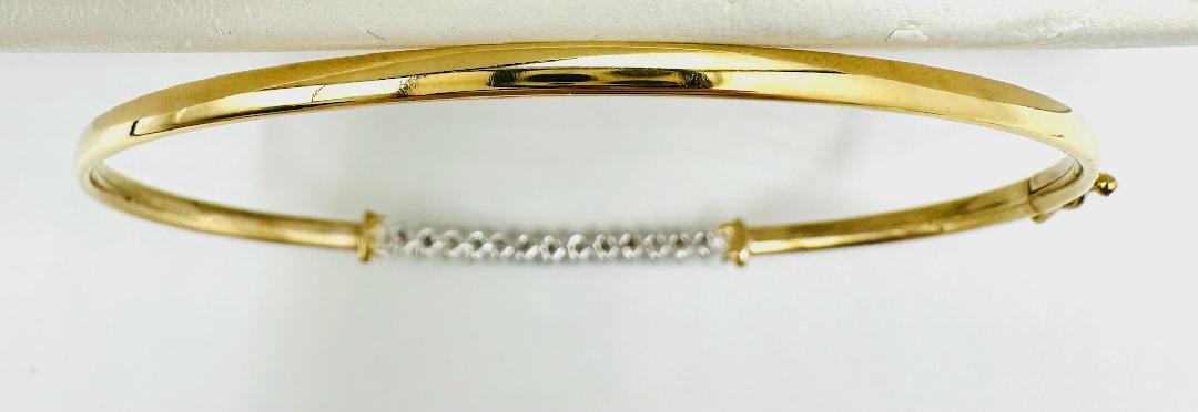 Natural Diamond Bangle Bracelet in 14KT Yellow and White Gold