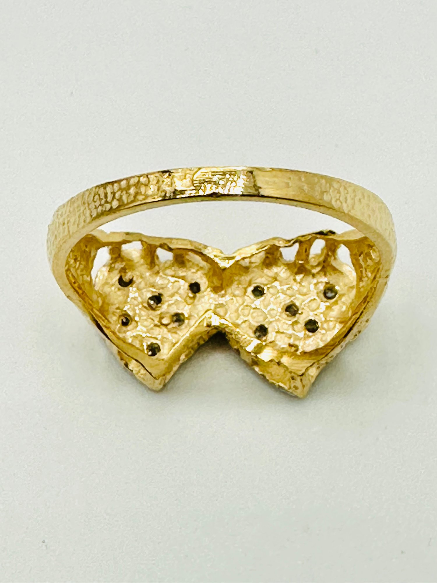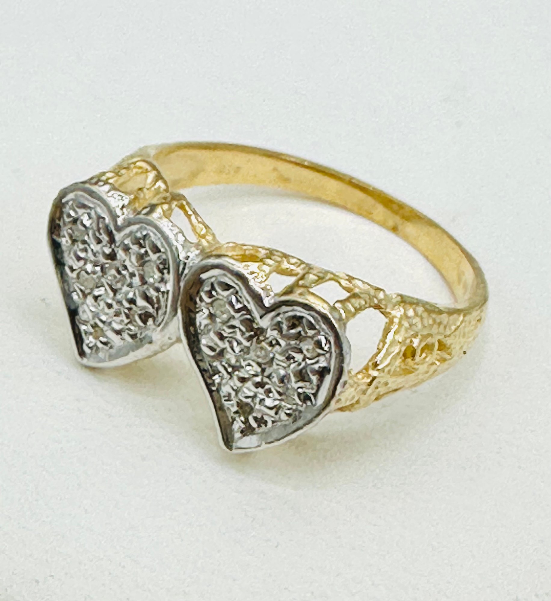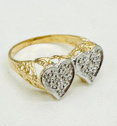Natural Diamond Double Heart Ring,14KT Yellow Gold
