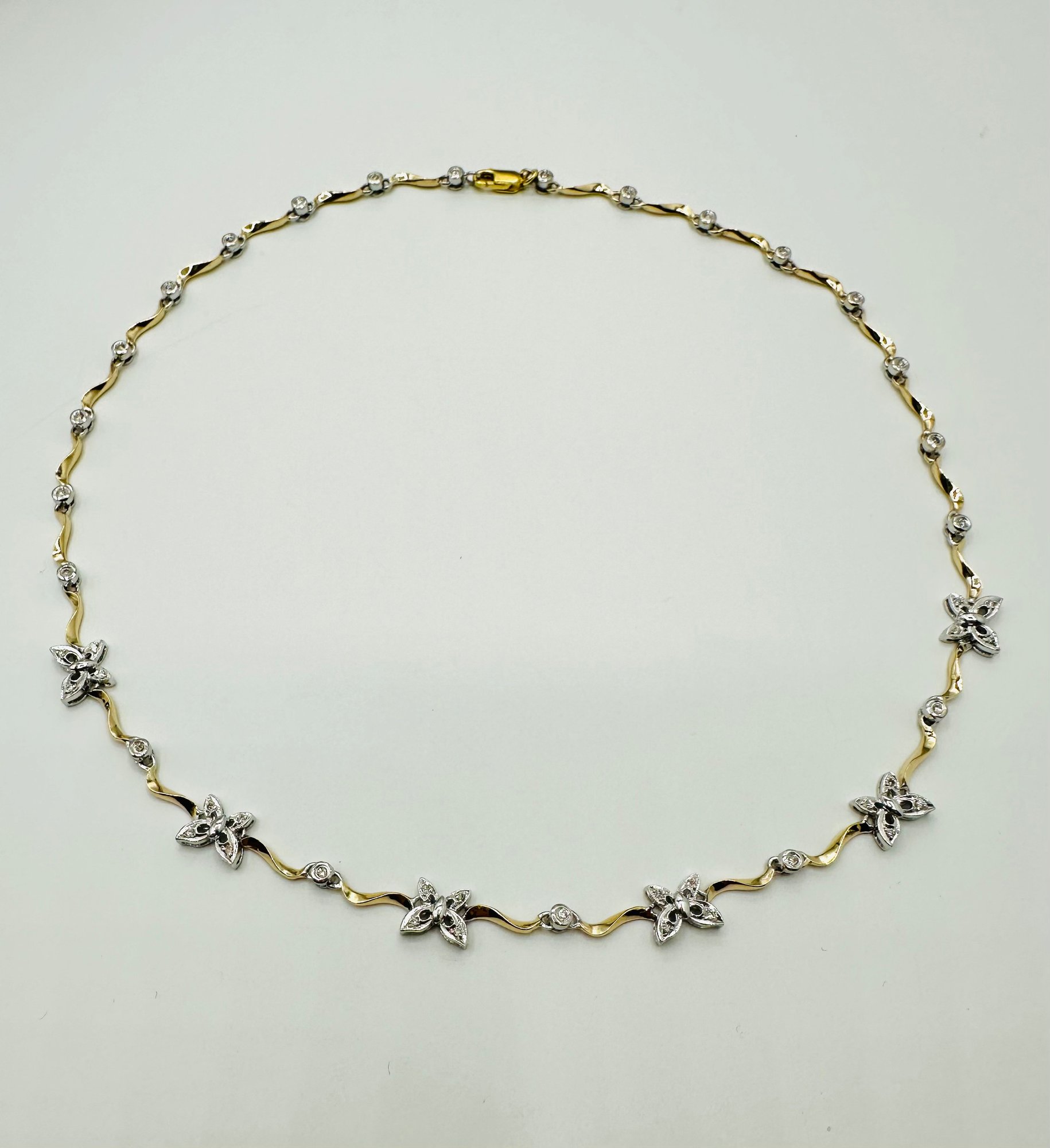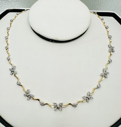 Natural Diamond Necklace, 14KT Yellow and White Gold