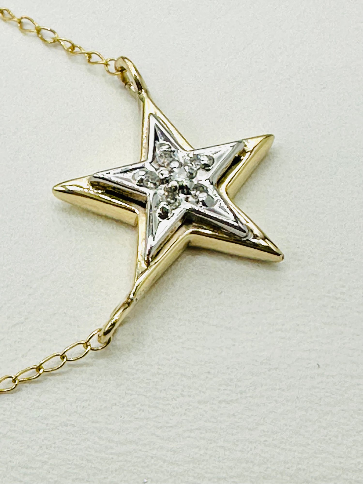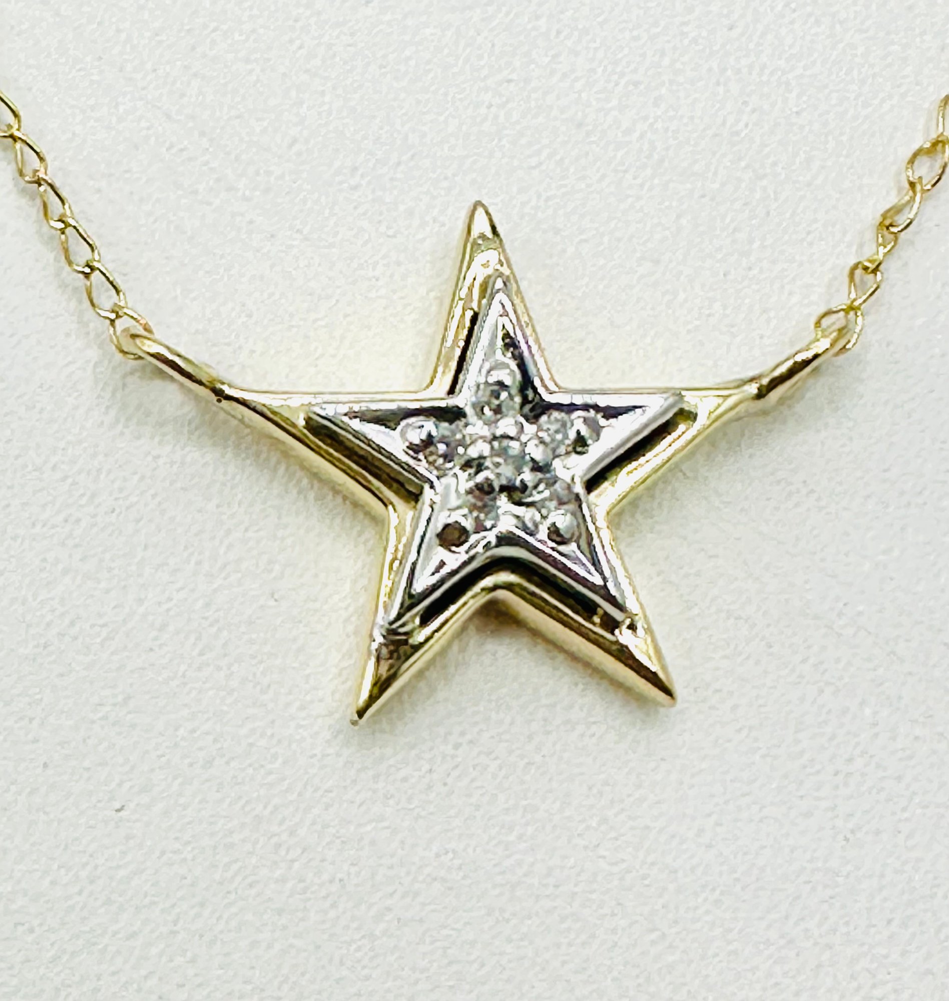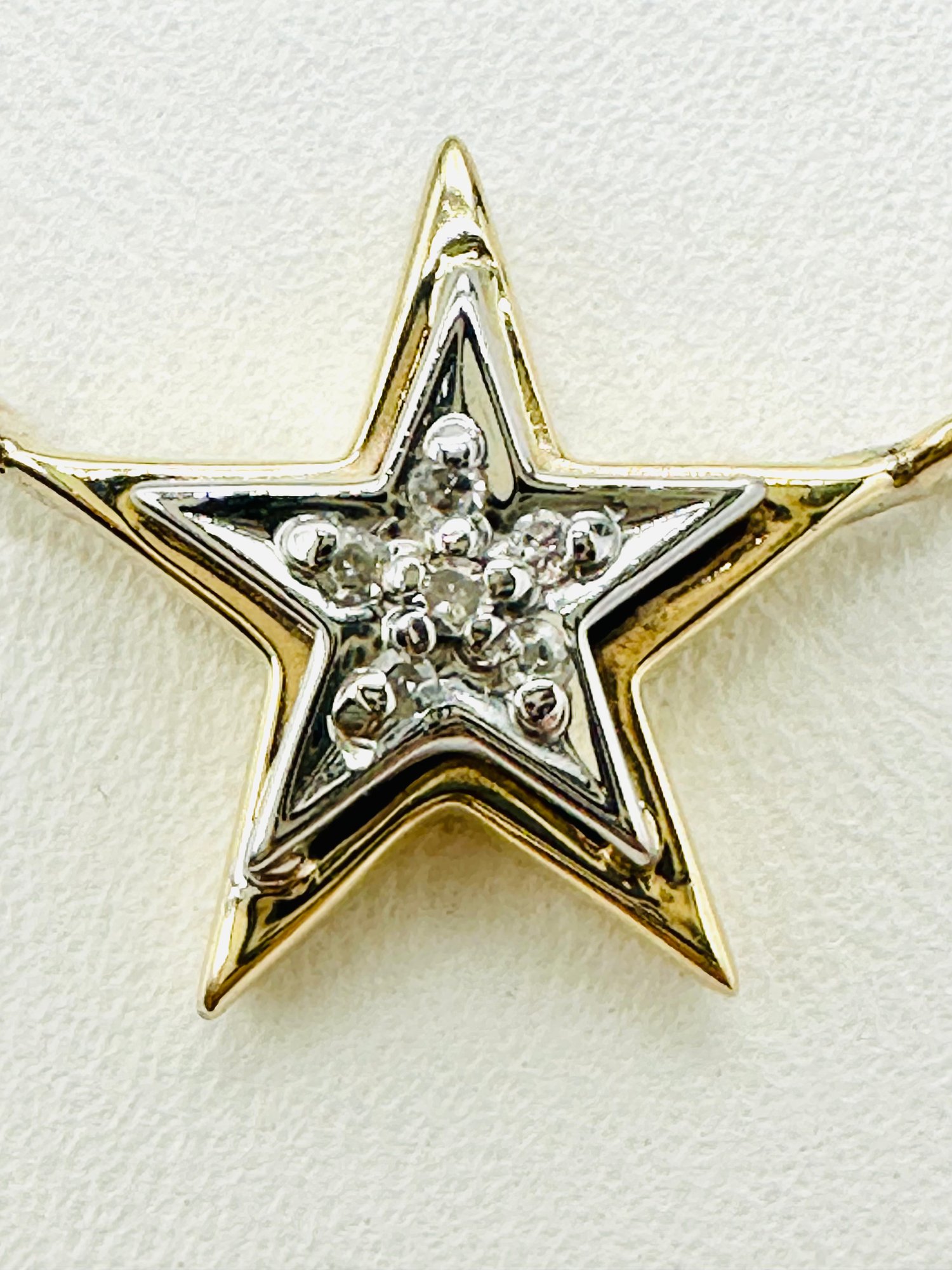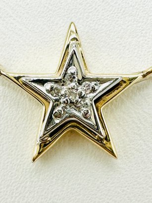 Natural Diamond Star Pendant and Chain,14KT Yellow Gold