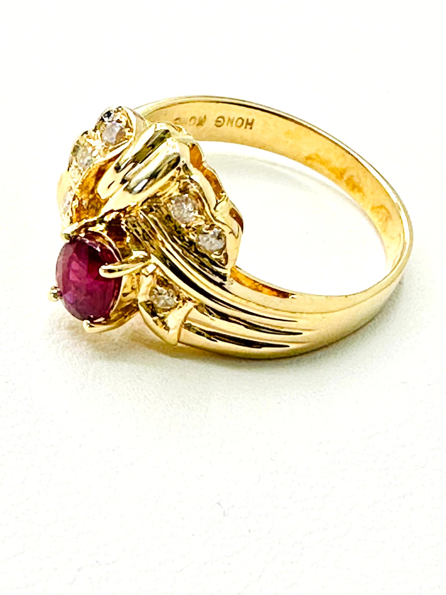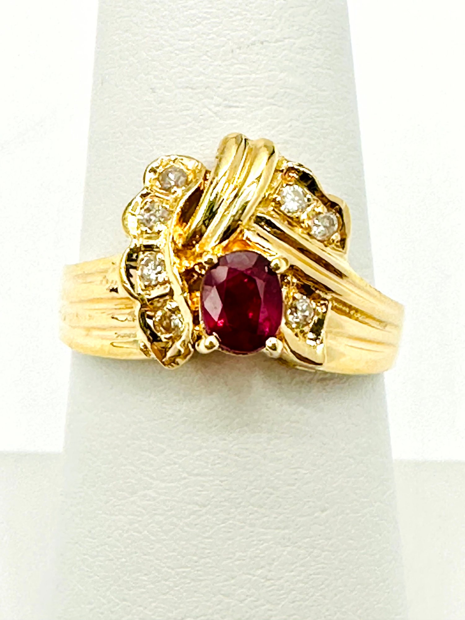 Natural Ruby and Diamond Ring in 14KT Yellow Gold