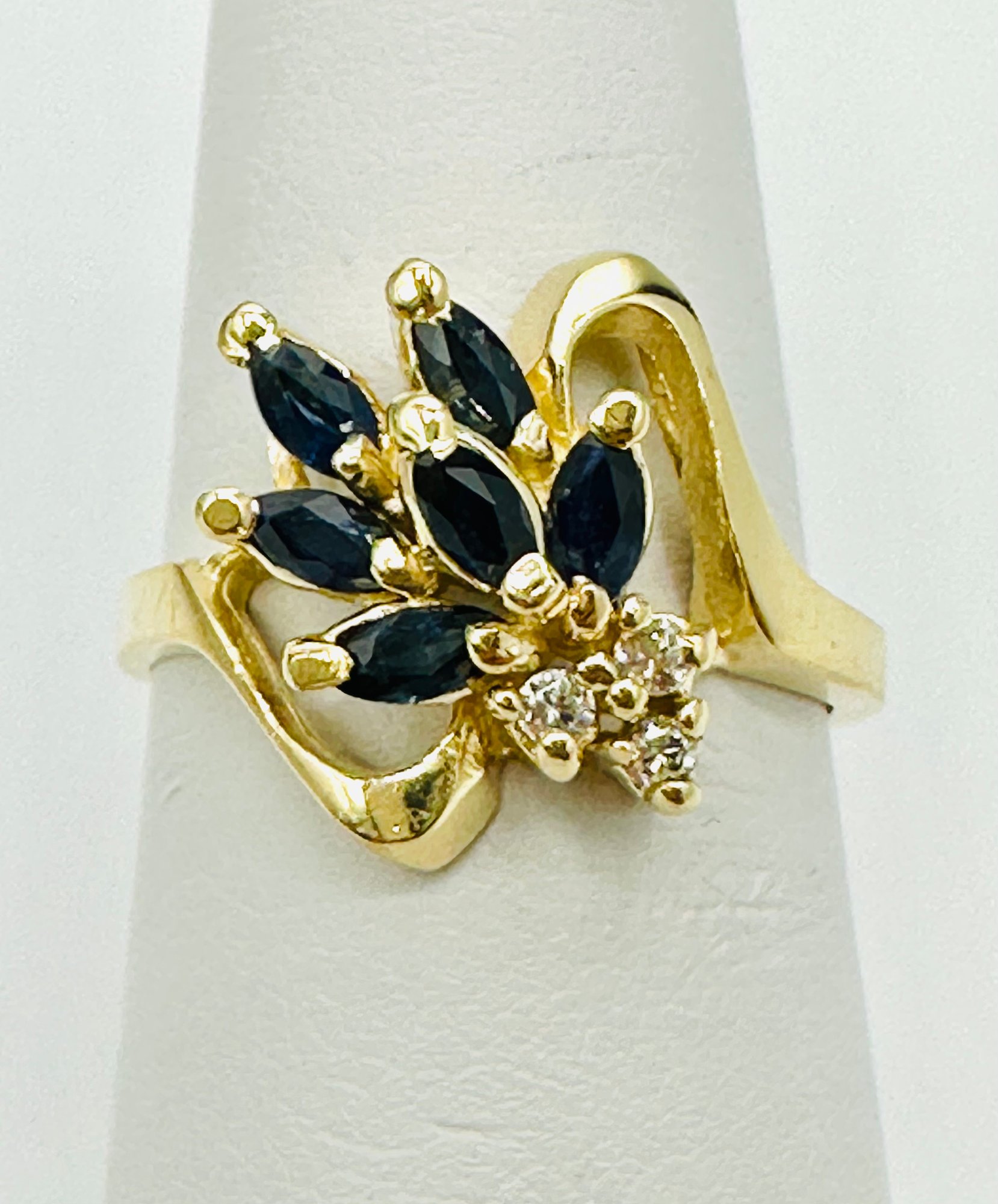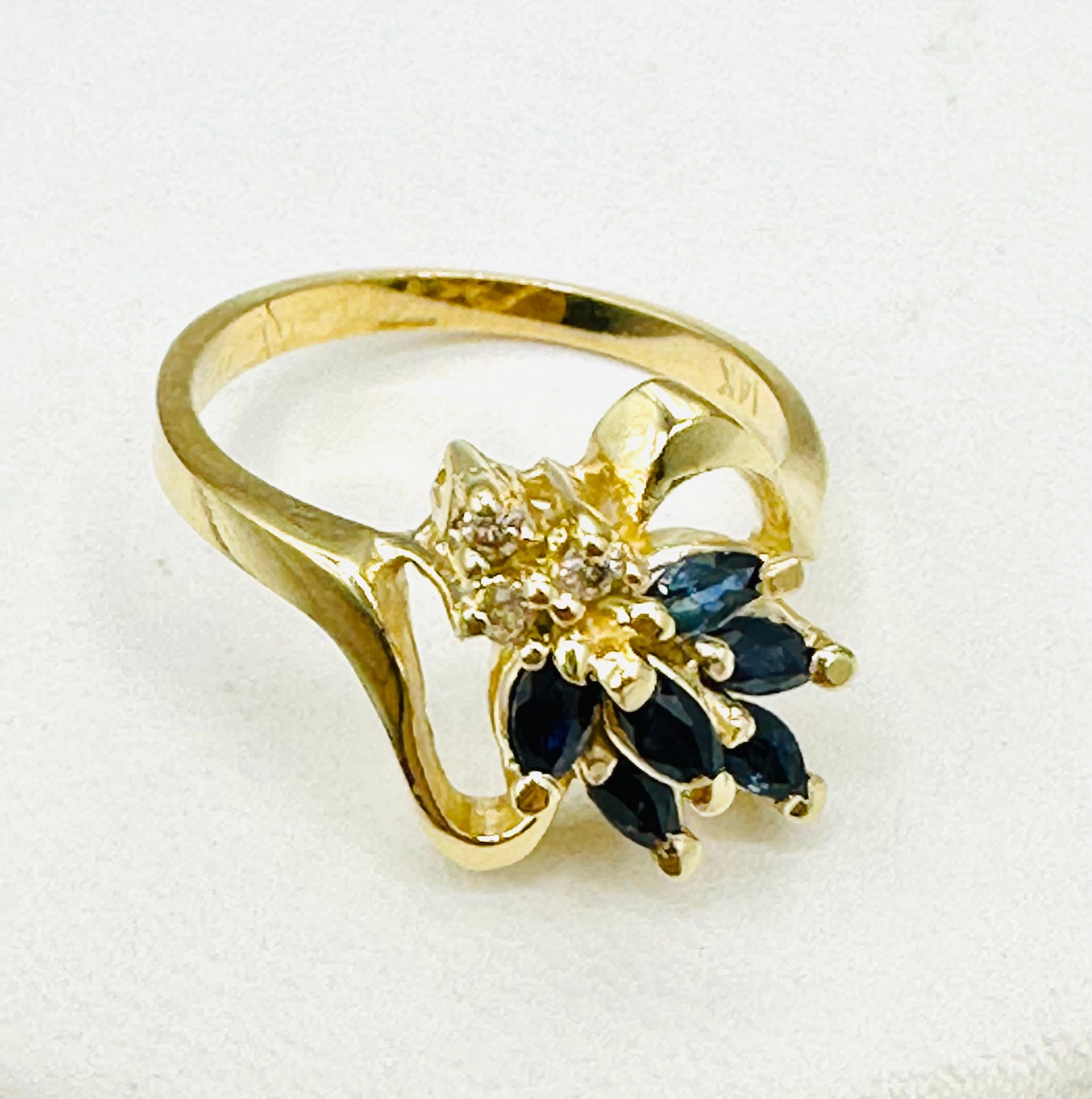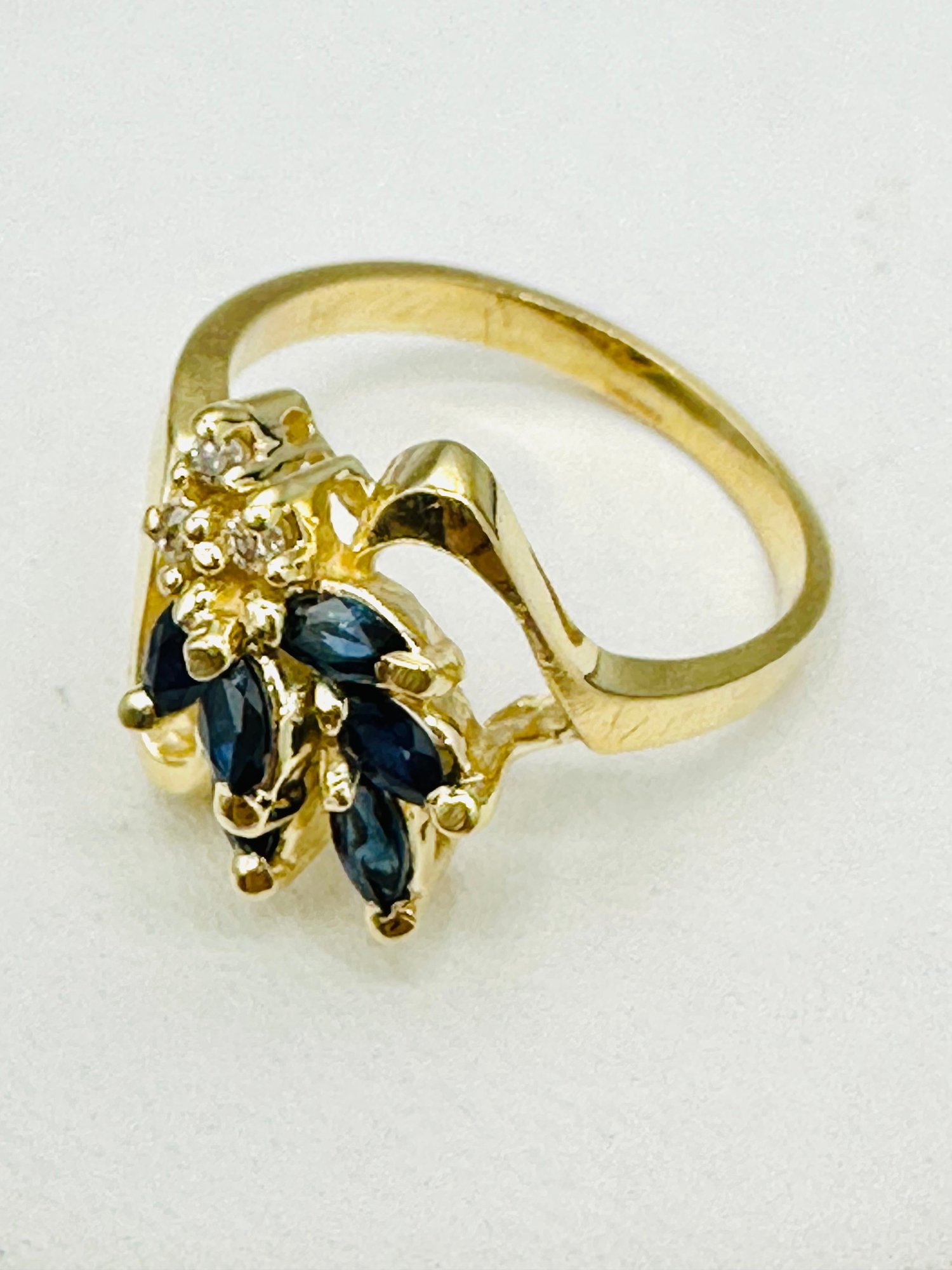 Natural sapphire and Diamond Ring,14KT Yellow Gold