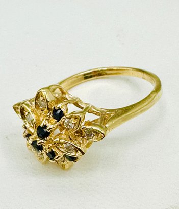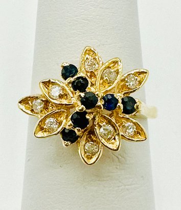 Natural Sapphire and Diamond Ring,14KT Yellow Gold