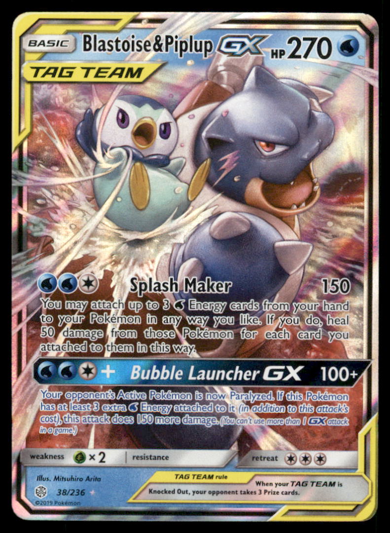 Blastoise & Piplup GX SM - Cosmic Eclipse #38/236 Holo Pokemon Card