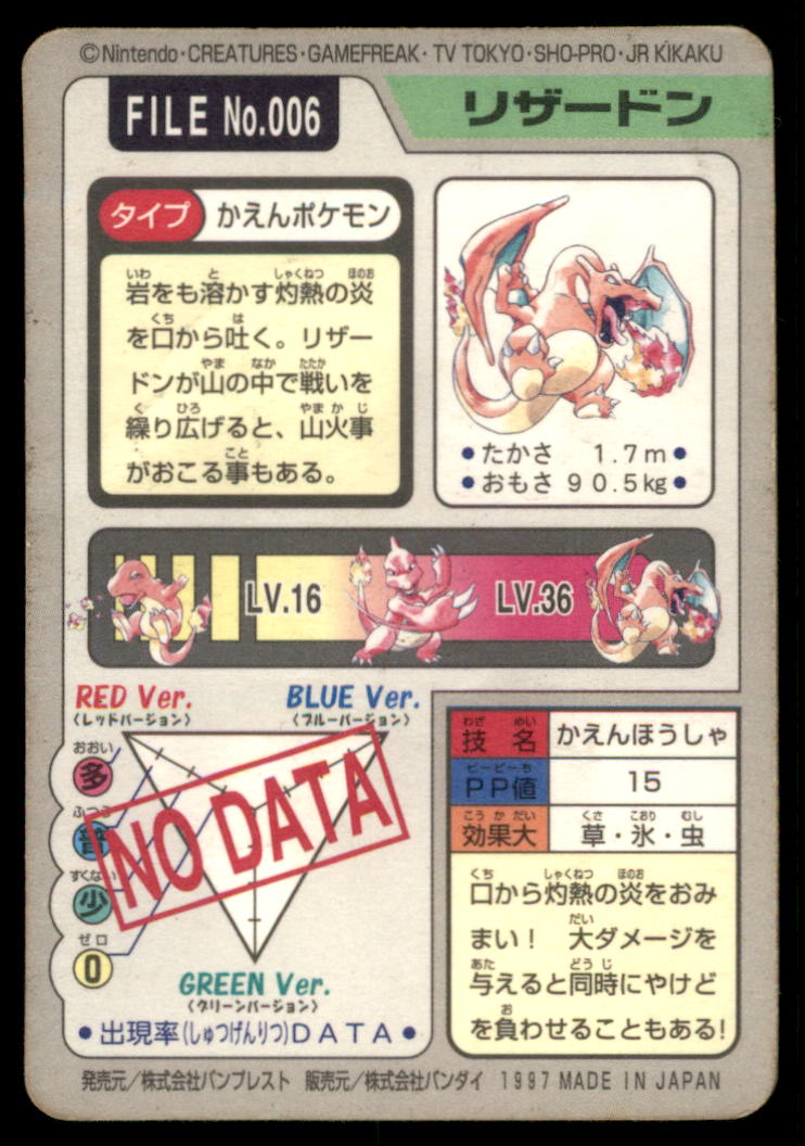 Charizard Bandai Carddass Holo 1997 Japanese Pokemon Card