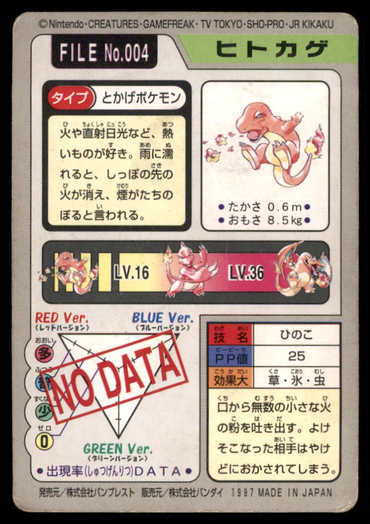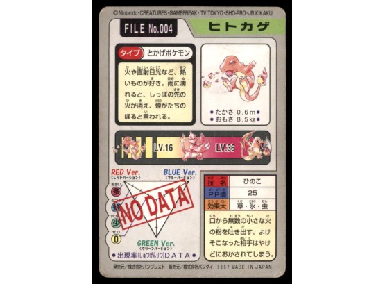 Charmander Bandai Carddass Holo 1997 Japanese Pokemon Card