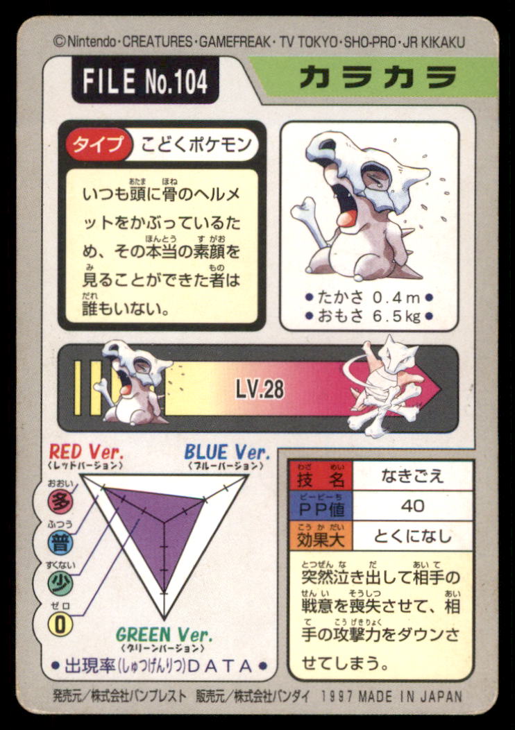 Cubone Bandai Carddass Holo 1997 Japanese Pokemon Card