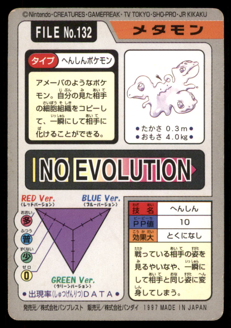 Ditto Bandai Carddass Holo 1997 Japanese Pokemon Card
