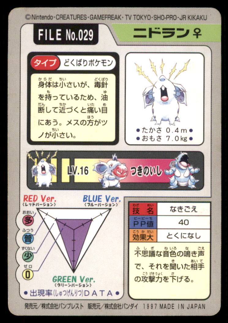 Nidoran Bandai Carddass Holo 1997 Japanese Pokemon Card