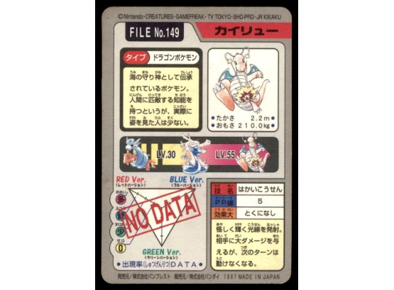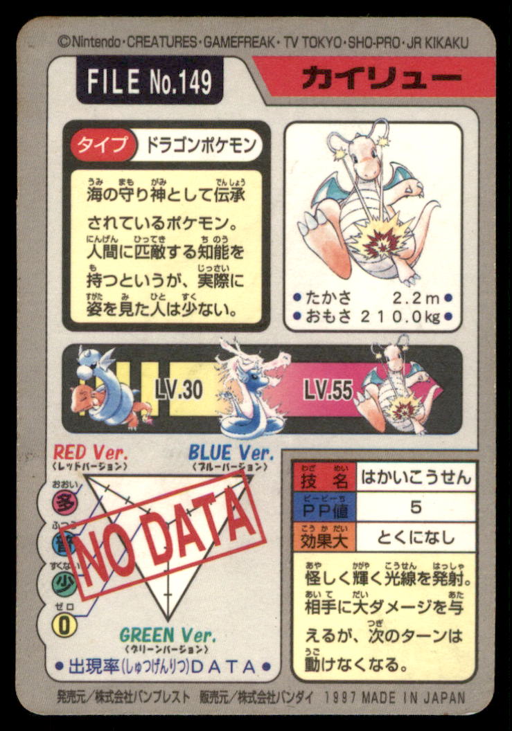Dragonite Bandai Carddass Holo 1997 Japanese Pokemon Card