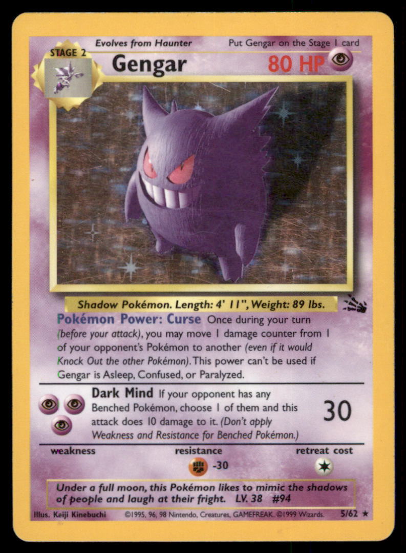Gengar (5) Fossil #05/62 Holo Pokemon Card