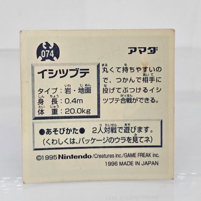 Geodude Pokemon Amada Seal Sticker 1998 Japanese Rare