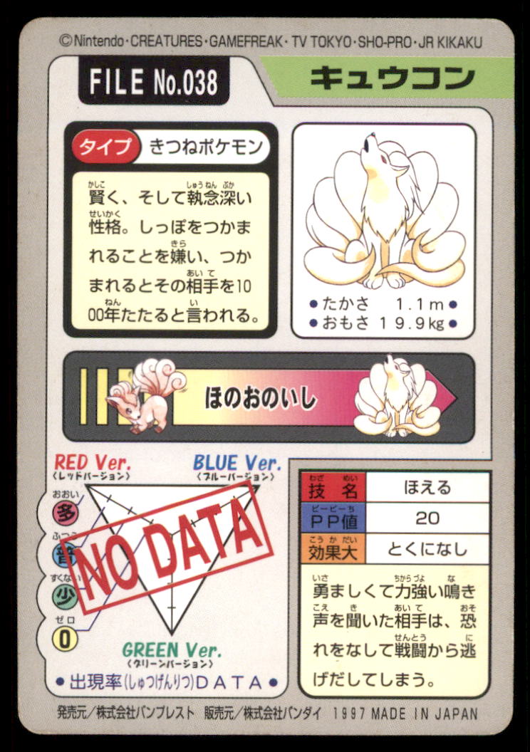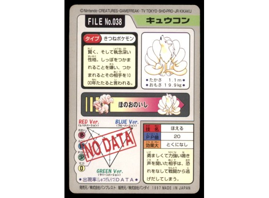 Ninetales Bandai Carddass Holo 1997 Japanese Pokemon Card