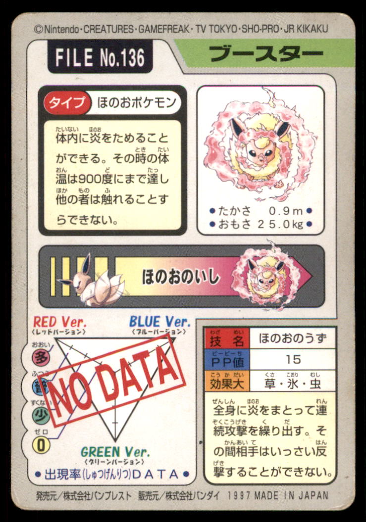 Flareon Bandai Carddass Holo 1997 Japanese Pokemon Card