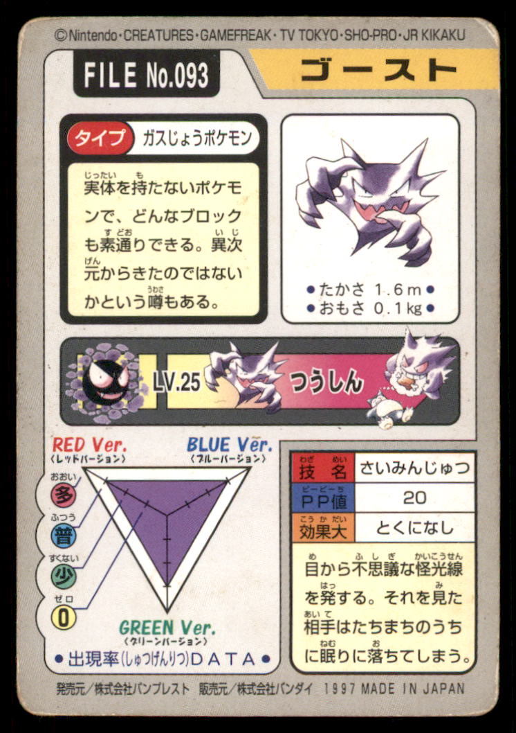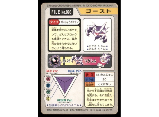 Haunter Bandai Carddass Holo 1997 Japanese Pokemon Card