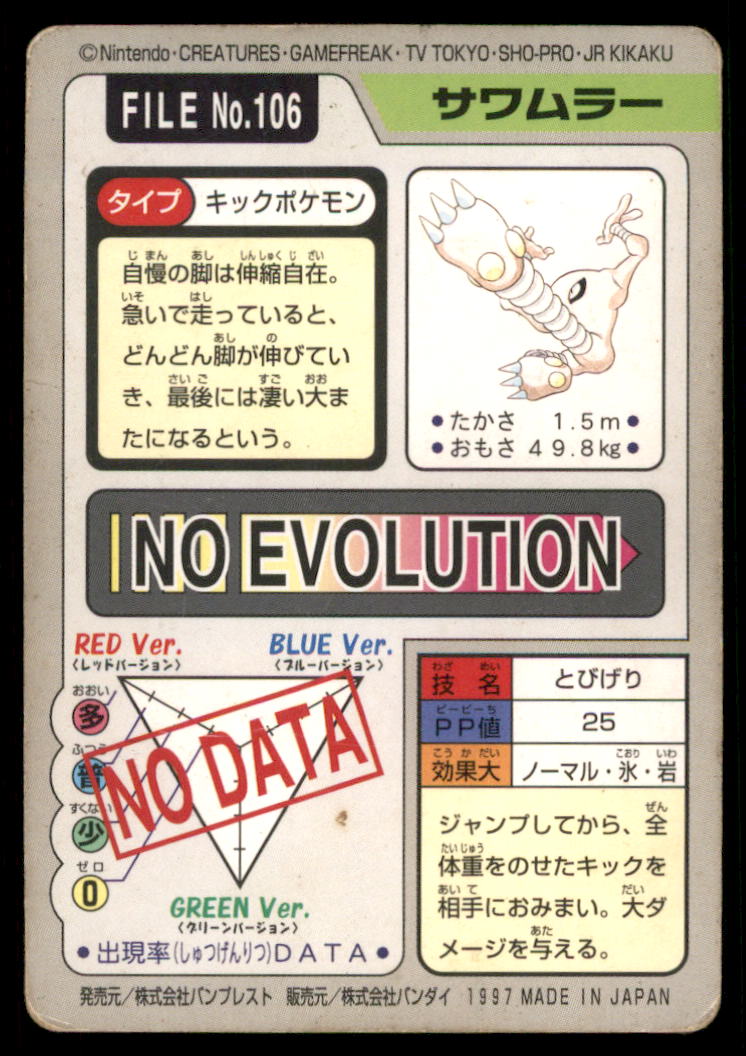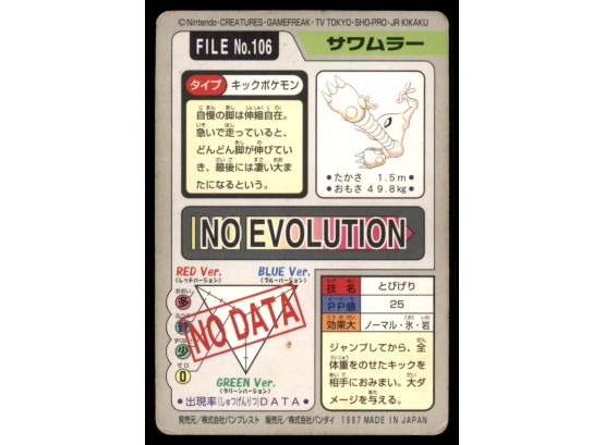 Hitmonlee Bandai Carddass Holo 1997 Japanese Pokemon Card