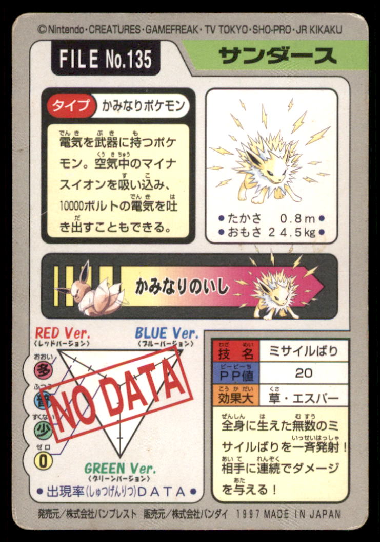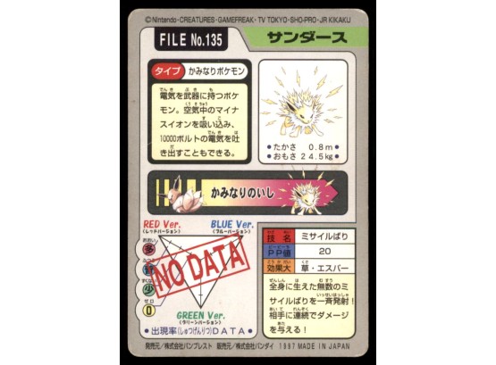 Jolteon Bandai Carddass Holo 1997 Japanese Pokemon Card