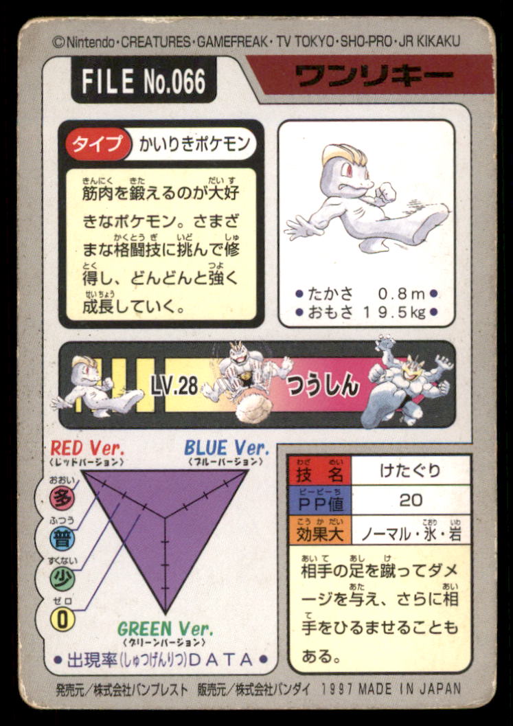 Machop Bandai Carddass Holo 1997 Japanese Pokemon Card