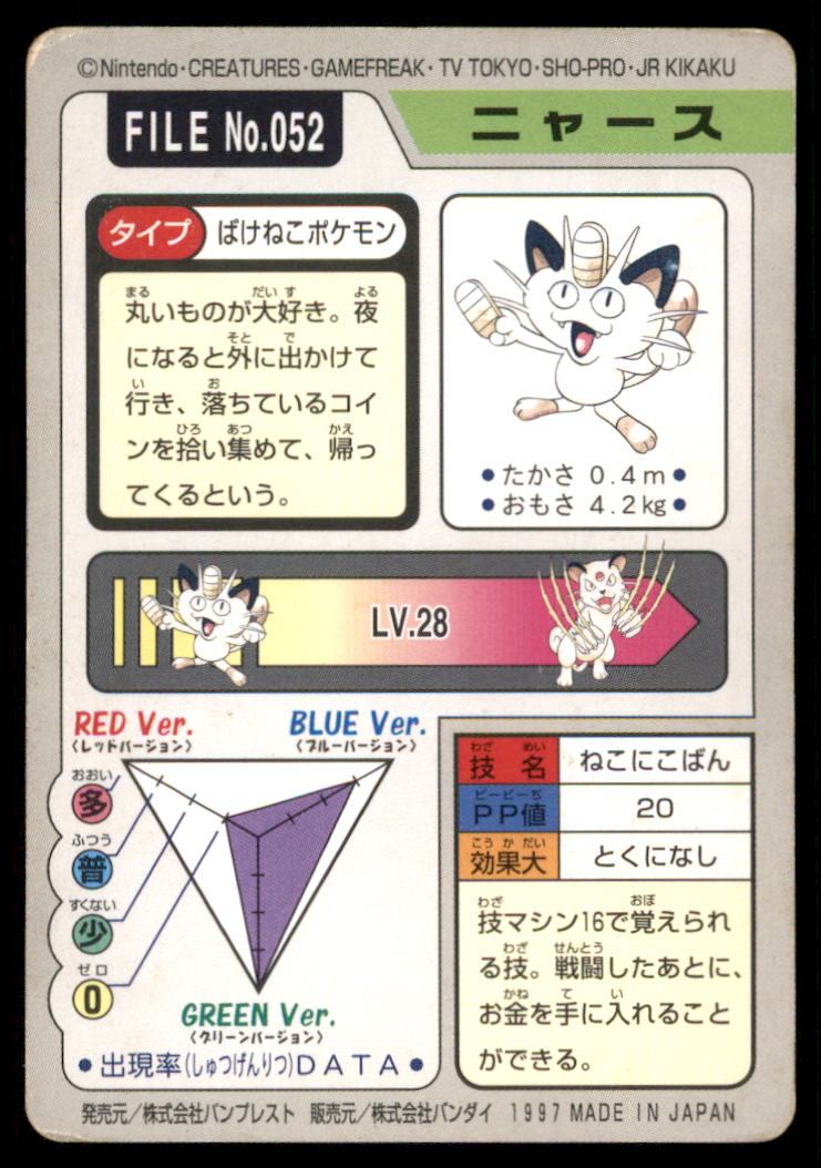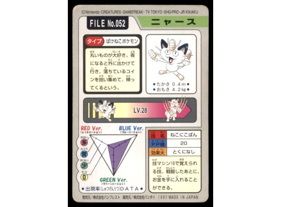 Meowth Bandai Carddass Holo 1997 Japanese Pokemon Card