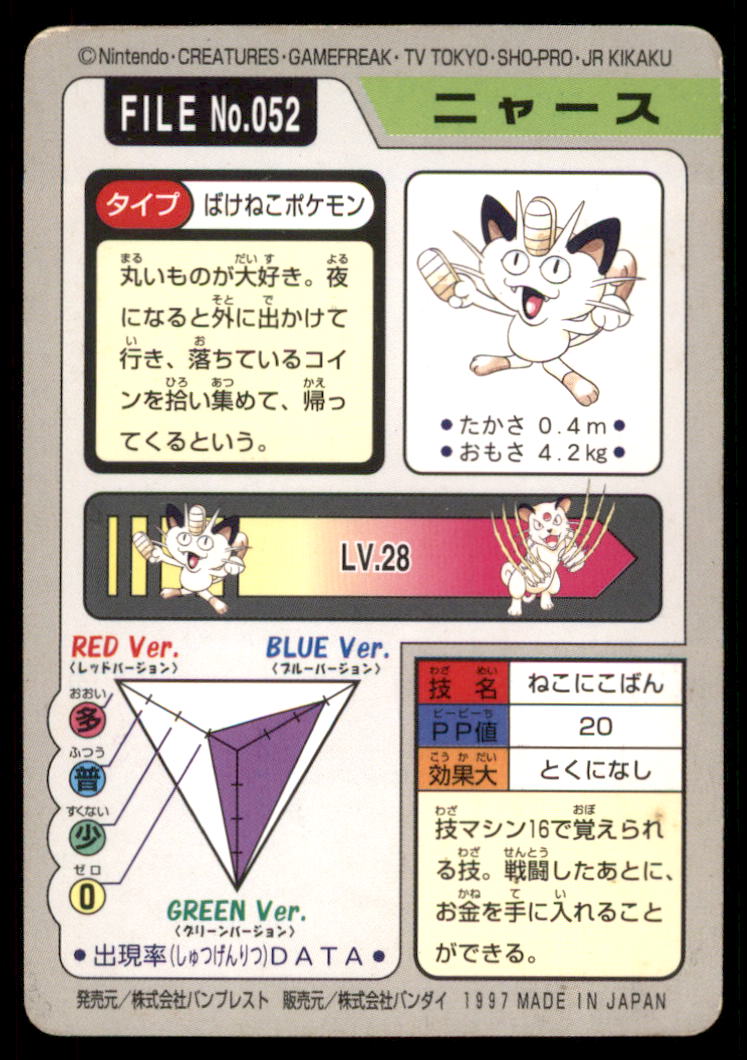 Meowth Bandai Carddass Holo 1997 Japanese Pokemon Card