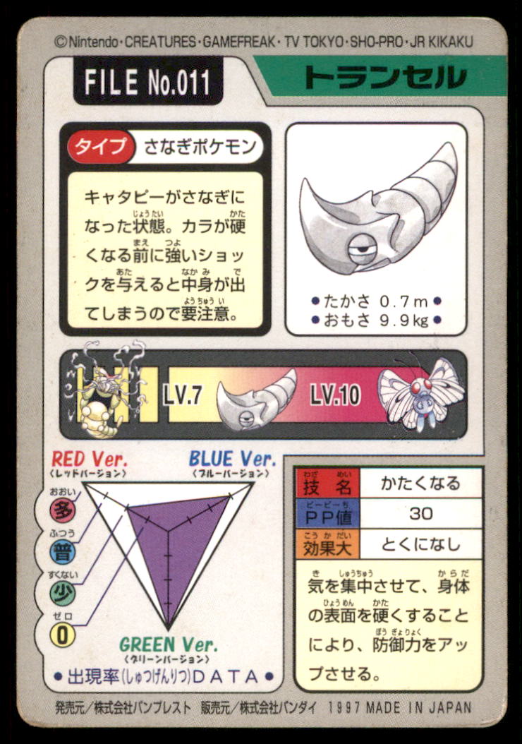 Metapod Bandai Carddass Holo 1997 Japanese Pokemon Card