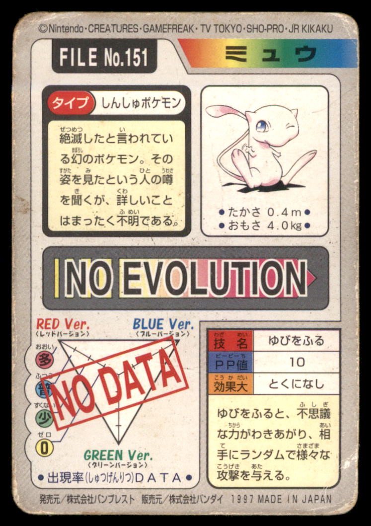 Mew Bandai Carddass Holo 1997 Japanese Pokemon Card