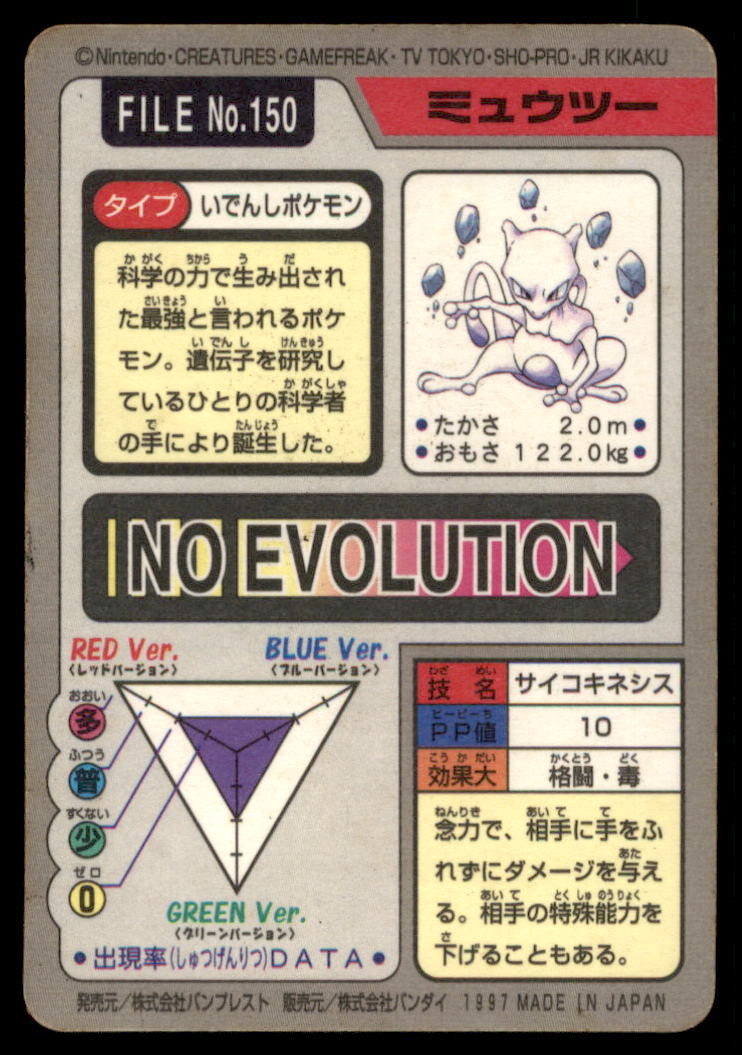 Mewtwo Bandai Carddass Holo 1997 Japanese Pokemon Card