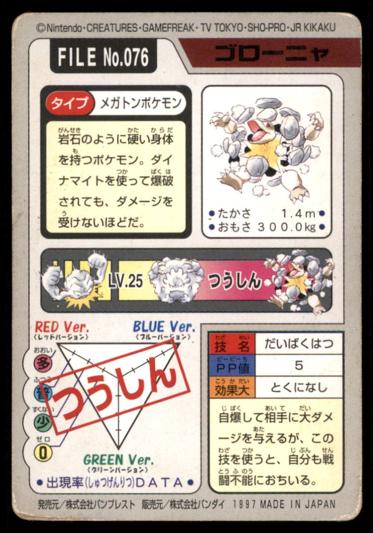 Golem Bandai Carddass Holo 1997 Japanese Pokemon Card