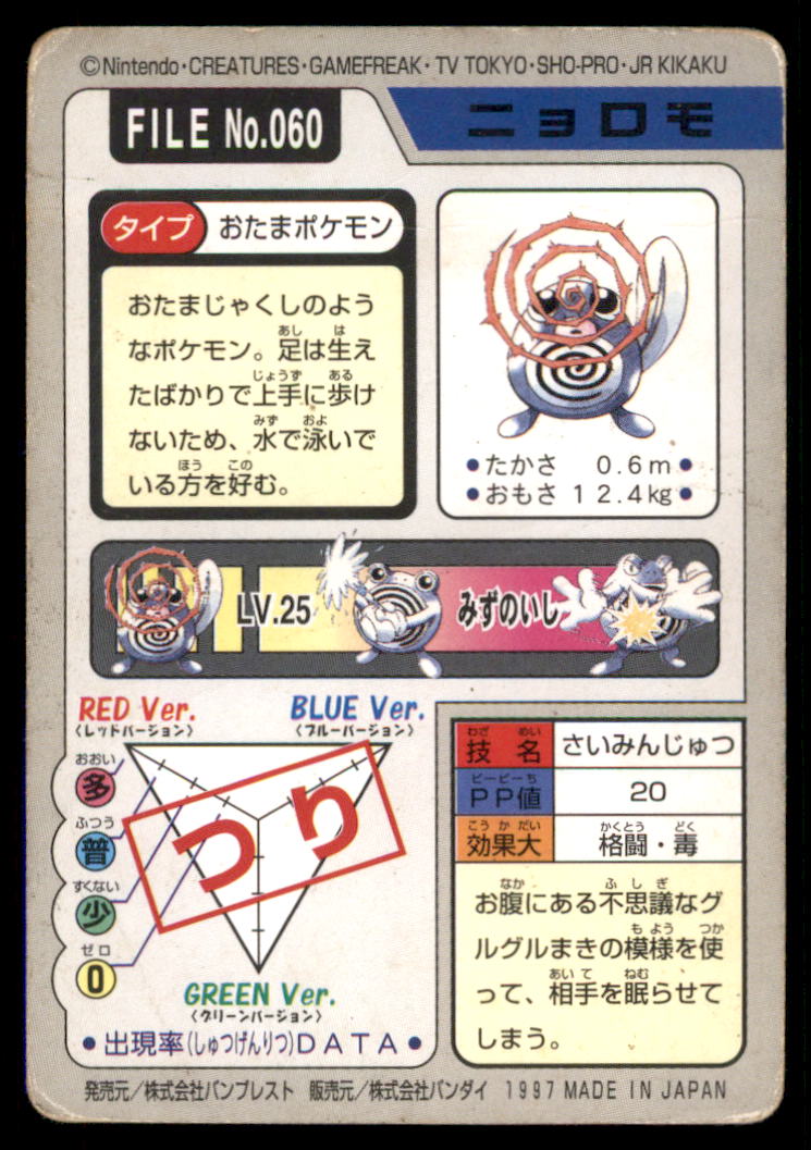 Poliwag Bandai Carddass Holo 1997 Japanese Pokemon Card